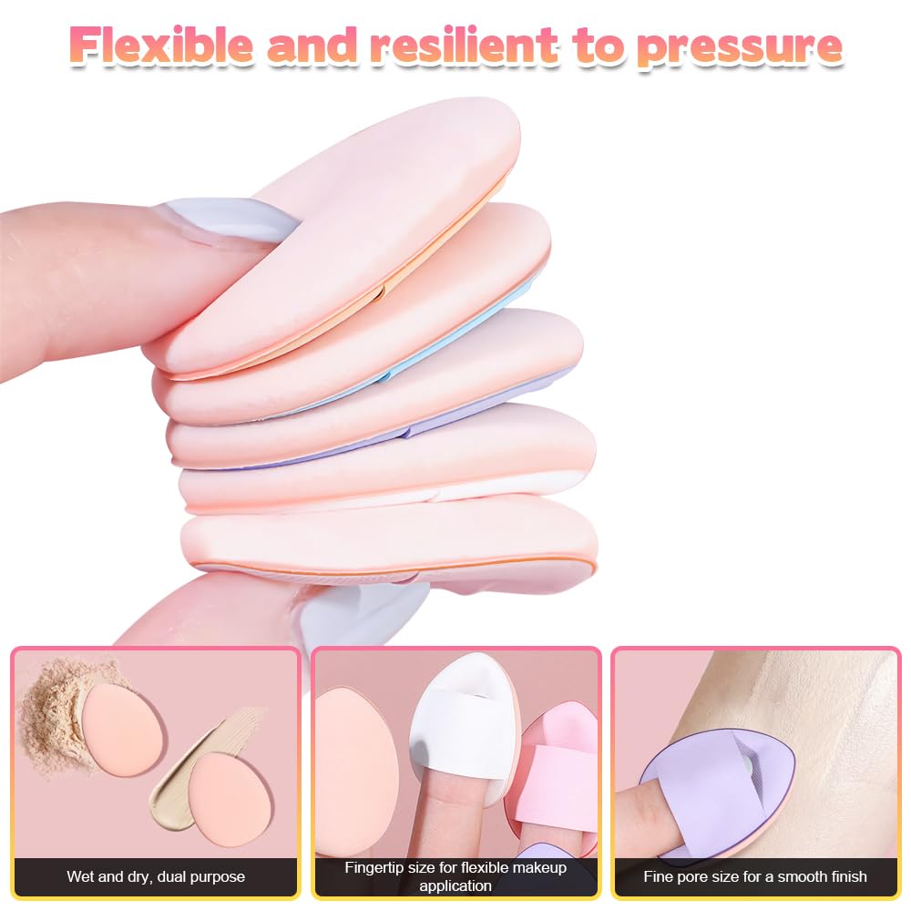 - đăMixed Color Thumb PuffăThis mini powder puff contains six different colors of thumb puffs, individual size of 3.9 cm/1.53 in x 3.1 cm/1.22 in, with a teardrop-shaped design, flawless concealer, the strength of a good control, can be used wet or dry, suitable for concealer, air cushion, loose powder, powder, etc., so that the puff as flexible as the fingers