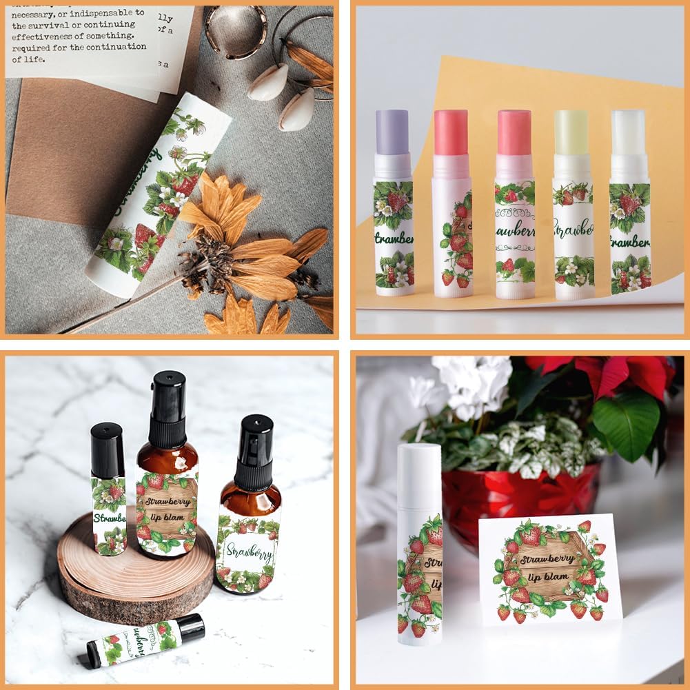 OLYCRAFT 100Pcs Self-Adhesive Lip Balm Tag Stickers 2.1x1.7 inch Waterproof Adhesive Label with Strawberry Rectangle Lipstick Tag Sticker for Lip Balm Container Tubes Lipstick Wrapping Decoration