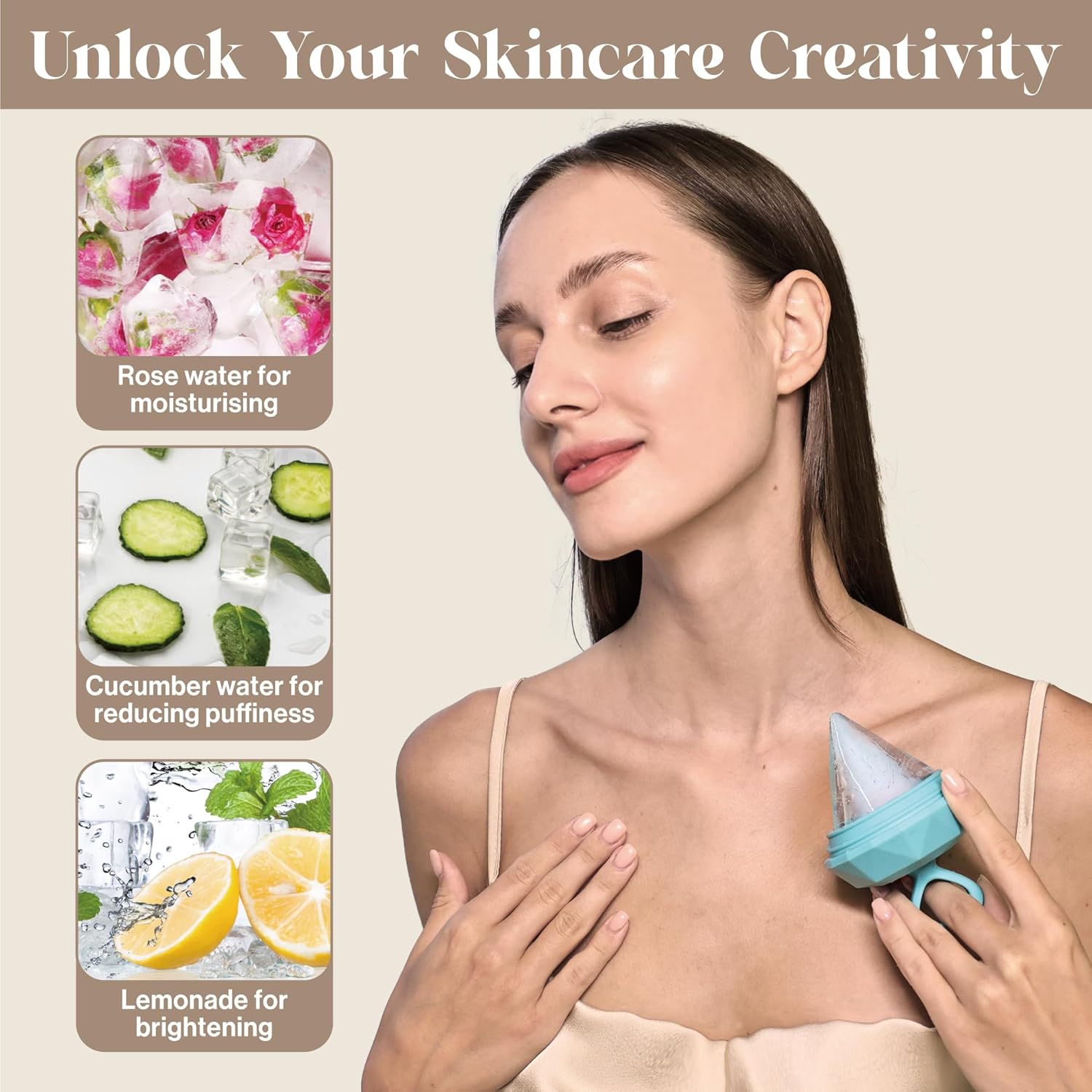Rena Chris Ice Roller for Face: Diamond Ice Facial Roller, Reach Detailed Areas, De-Puff Eye Bags, Reusable Silicone Massage Ice Mold with Face Wash Wristband, Skin Care Tools for Women(Blue)