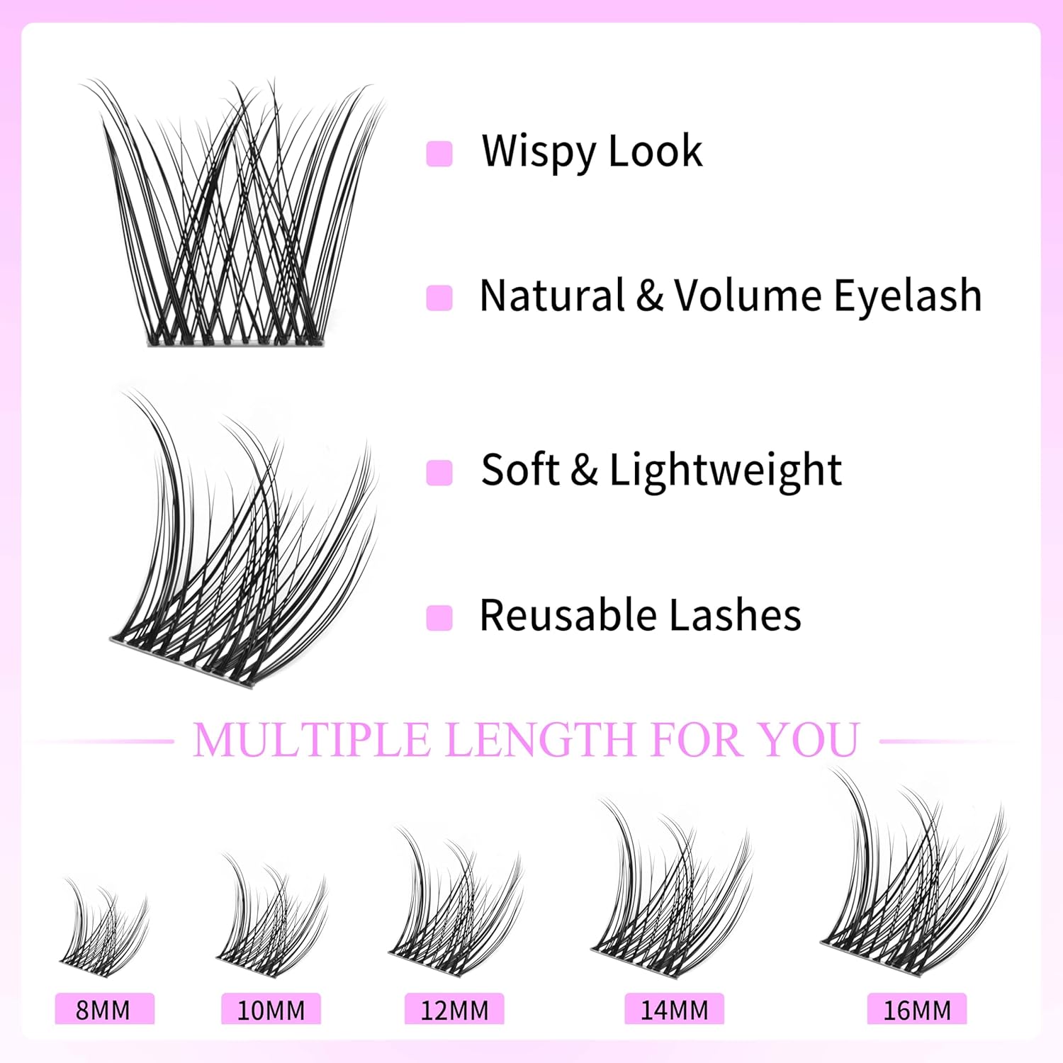 VEYESBEAUTY Lash Clusters Kit Individual Eyelash Extensions Thin & Invisible Band DIY False Eyelashes Newbie's Five-Second Series Wispy Lash Tray, LuxeBold KIT with Bond&Seal Remover Applicator