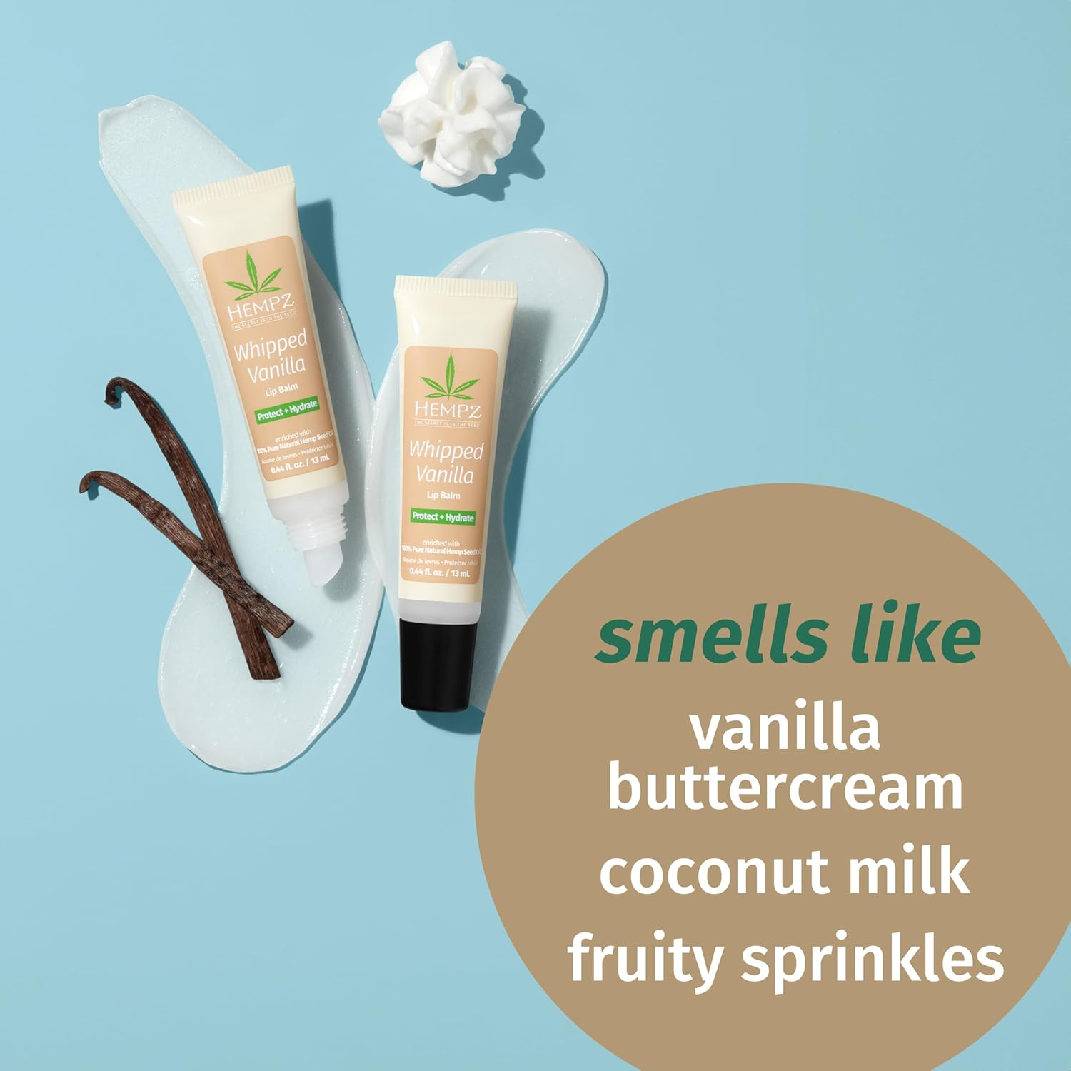 - SCENT: Transport your senses with our Whipped Vanilla Lip Balm with notes of Tonka Bean and warm Vanilla.