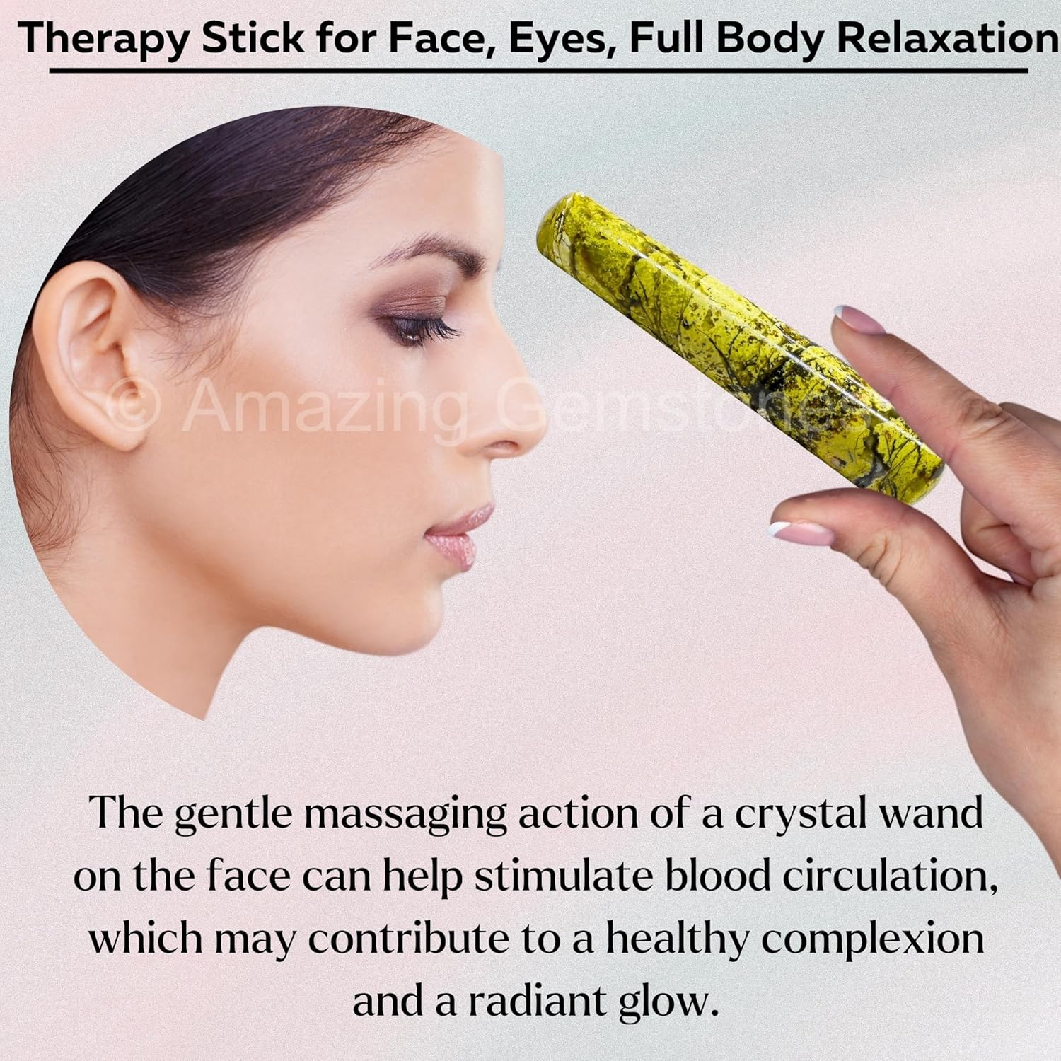 Amazing Gemstone Green Opal Crystal Wand Massage Stick - Pelvic Wand Gua Sha for Adults - Crystals and Healing Stones Massage Wands for Adults Gifts (Smooth)