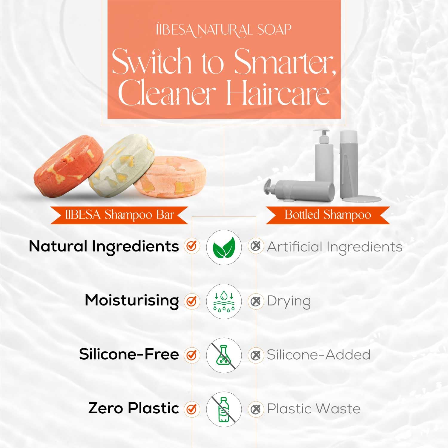 - Pure, Safe & Gentle Shampoo Bar Soap: Free from sulfates, parabens, artificial fragrances, and dyes, the IIBESA Natural Soap moisturizing shampoo bar is ideal for sensitive hair and scalps. Whether you are searching for a cleansing oily hair shampoo, dry hair shampoo, or curly hair shampoo, our natural hair shampoo bar will provide a soothing cleanse without harsh chemicals.