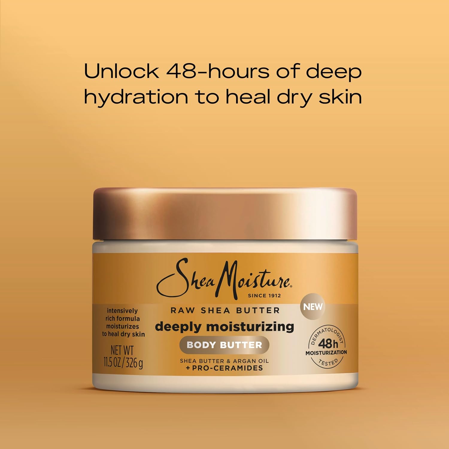 SheaMoisture Deeply Moisturizing Body Butter with Raw Shea Butter, Argan Oil and Pro-Ceramides, Rich Hydration & Healing of Dry Skin, 48H Moisturizing 11.5 oz