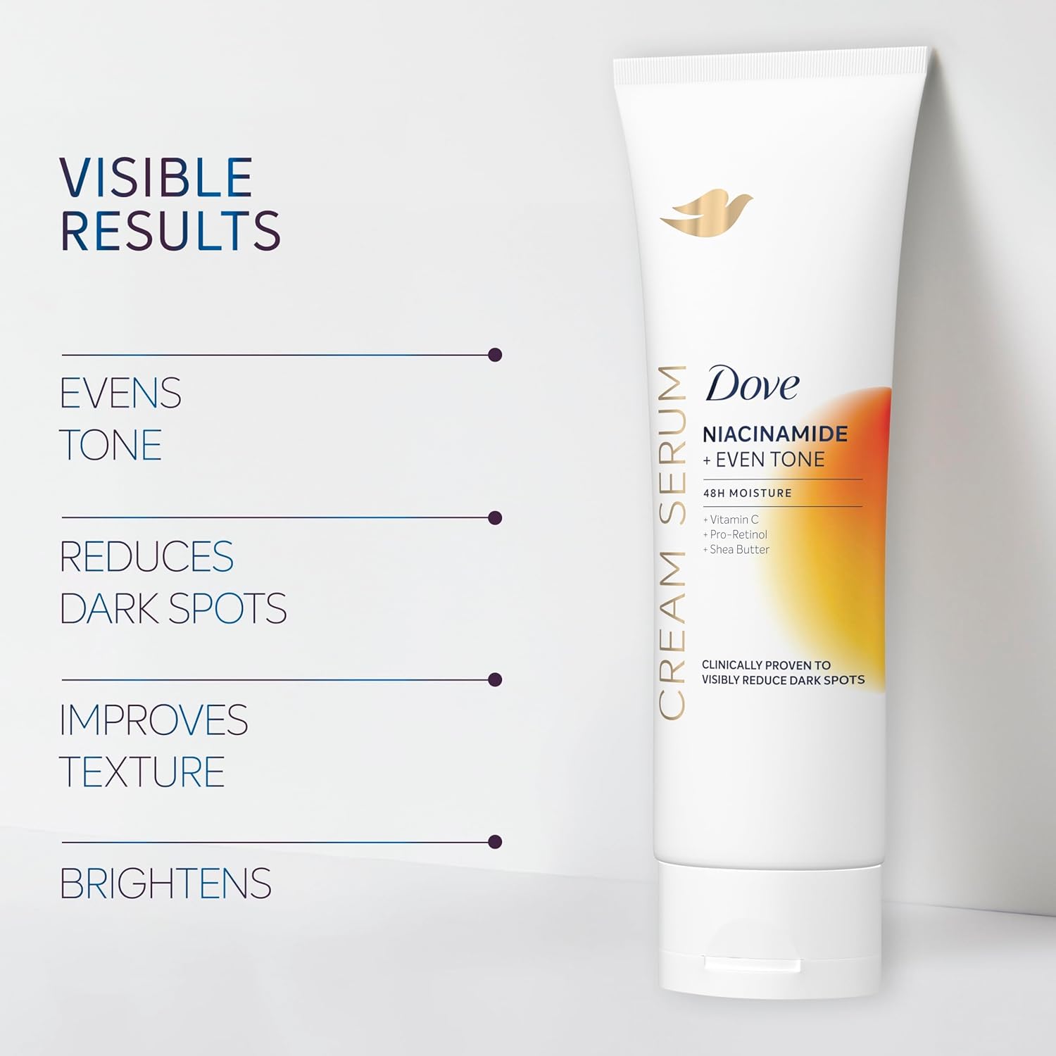 Dove Body Cream Serum Niacinamide + Even Tone for Dark Spots and Uneven Tone with Vitamin C, Pro-Retinol and Shea Butter Lotion, 8 oz