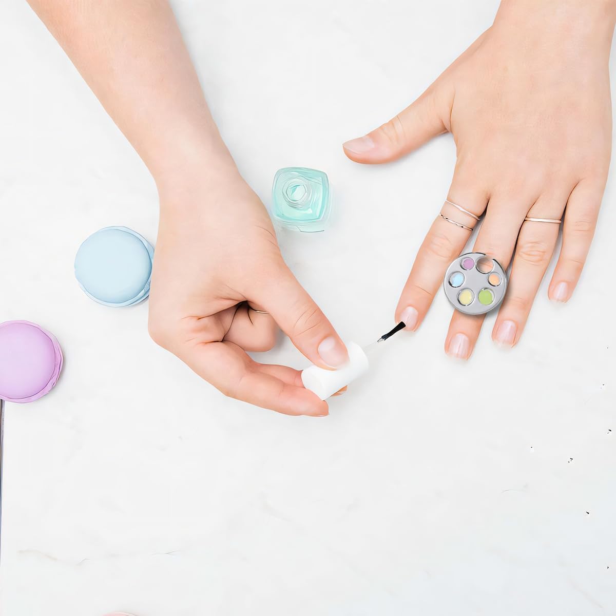 - [Easy to Use] - The mini nail art palette ring is easy to carry, and you can carry it with you to adjust the color of your nails anytime and anywhere.