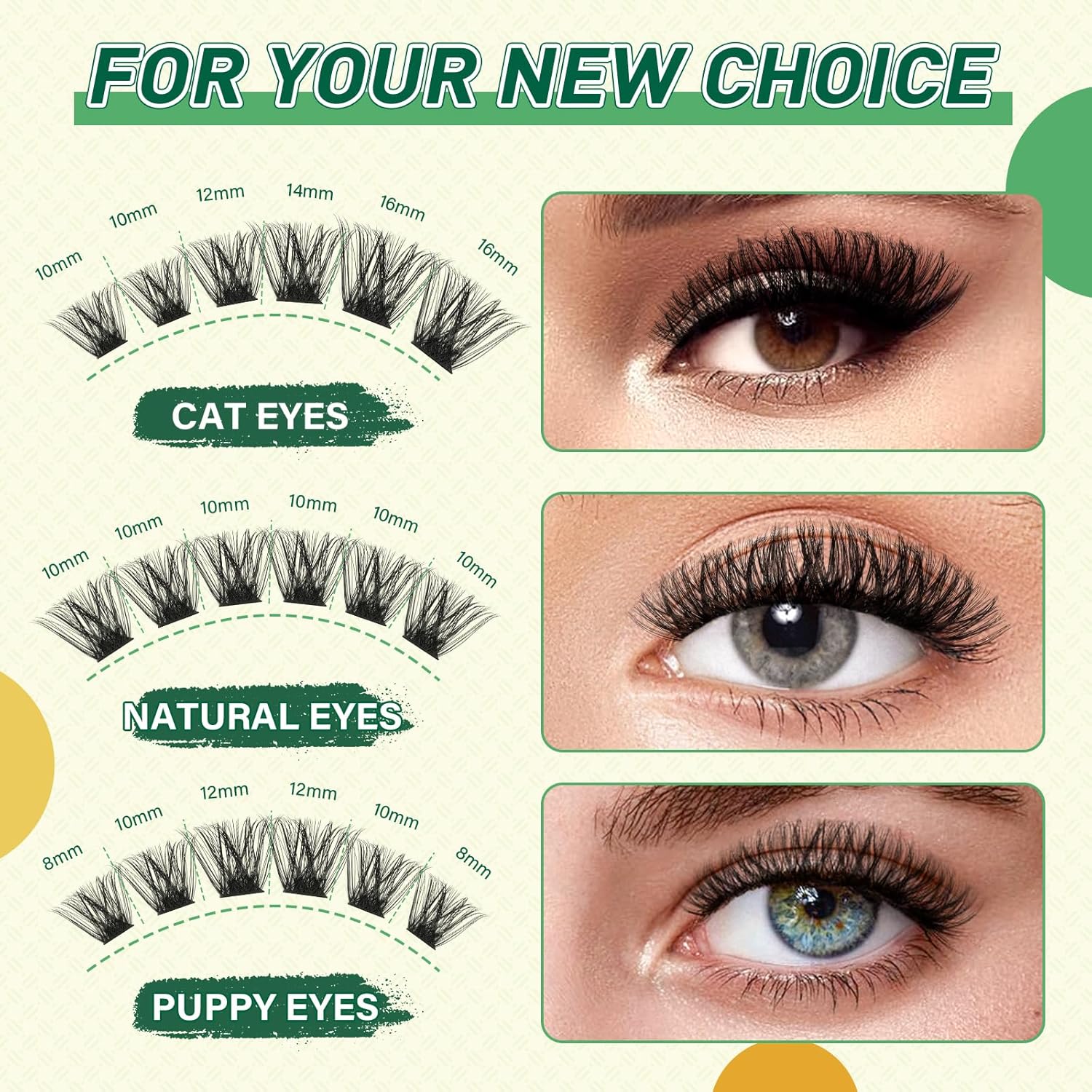 - 【144pcs High Quality Cluster Lashes】The simulated eyelash material is more realistic and will not feel plastic, comfortable and non-irritating on the eyes, allowing you to easily maintain a perfect makeup all day long.