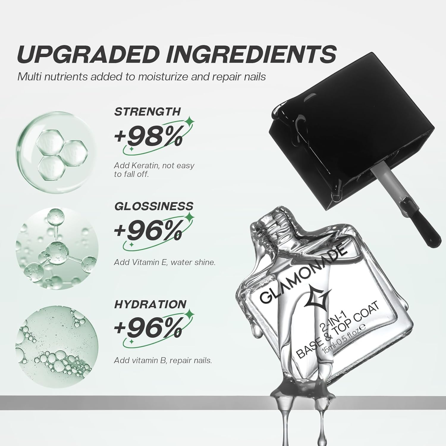 - Natural Ingredients & High Compatibility: Is made of natural resins and ingredients,non-toxic,non-yellowing.Perfectly compatible with any type of nail polish.But will not change the original color of nail polish.