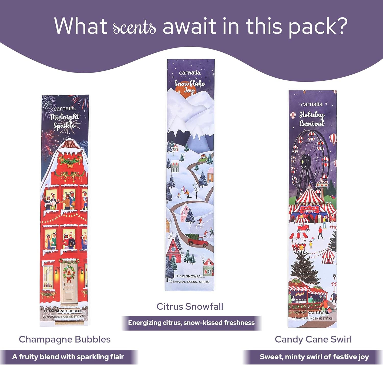 Carnatia Frosty Miracle Incense Collection – 6 Enchanting Scents | Snowy Adventures, Winter Vibes, and Cozy Aromas for Holiday Season!