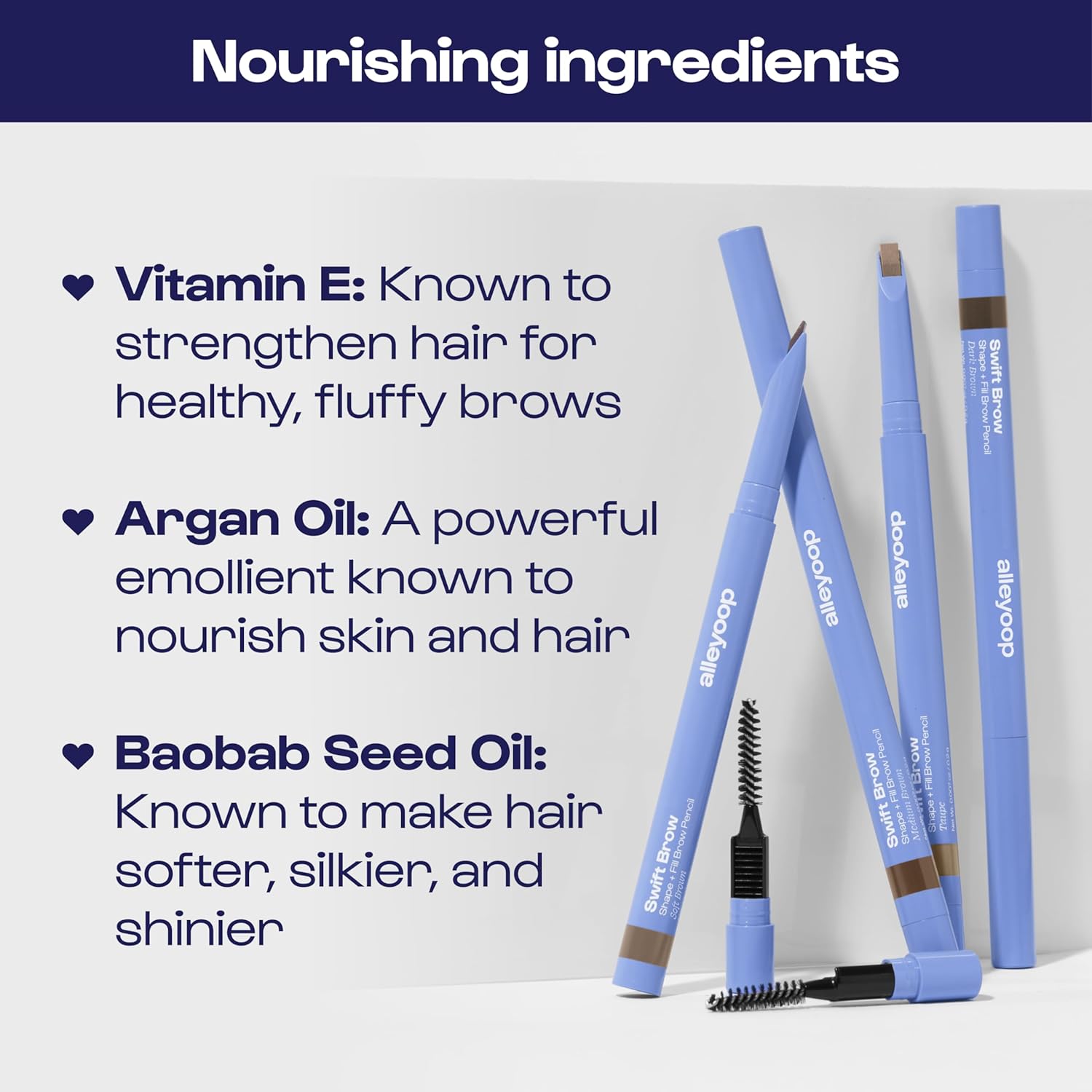 ALLEYOOP Swift Eyebrow All-In-1 Brow Definer with Built-In Sharpener & Spoolie Brush, Water & Smudge Resistant and Eyebrow Pencil for Women, Natural Matte Finish, Vegan, Cruelty-Free (Dark Brown)