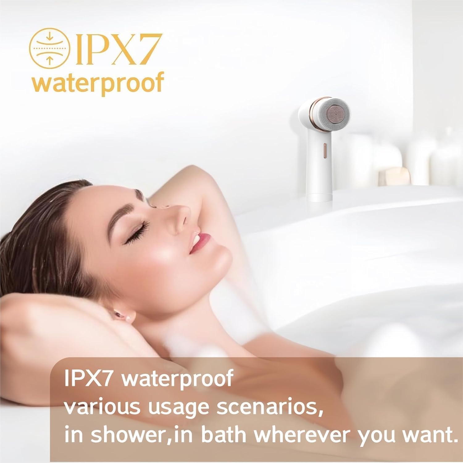 - 【Genuine 7-Level Waterproof】: This silicone face scrubber has true 7-level waterproofing—safe to use in shower or in bath. As an Electric face scrubber waterproof, it handles wet conditions, so you can lather freely in shower or relax with it in bath. The silicone face scrubber material resists water damage, and its pore scrubbing brush function stays effective even when wet. It’s more reliable than other tools, ideal for daily use.