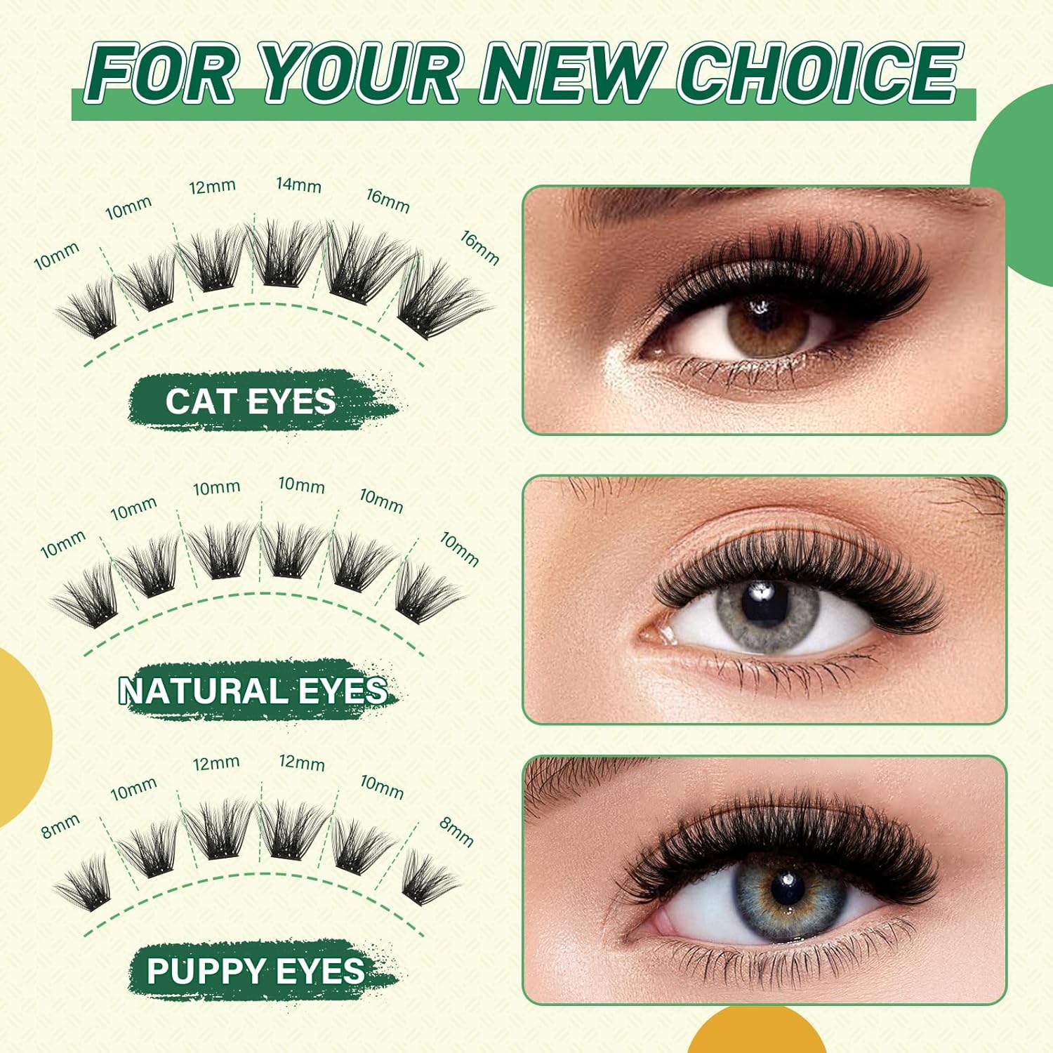 - 【144pcs High Quality Cluster Lashes】The simulated eyelash material is more realistic and will not feel plastic, comfortable and non-irritating on the eyes, allowing you to easily maintain a perfect makeup all day long.
