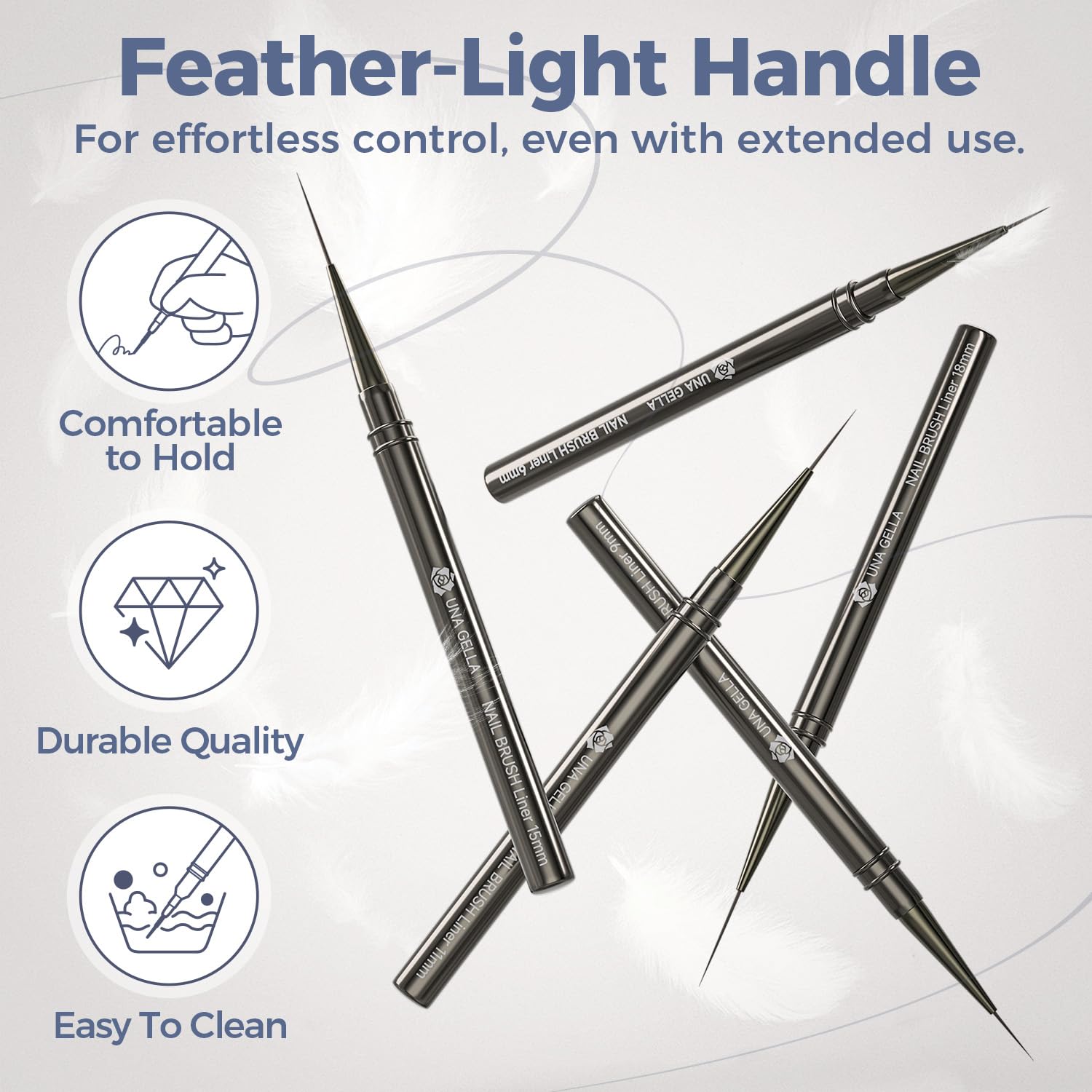 - đź’–Lightweight & Easy to Hold: Designed with a lightweight body that feels nearly weightless in hand, ensuring comfort even during long sessions. The ergonomic grip provides stability and control, while the high-elasticity bristles help you effortlessly create smooth, even, and precise lines