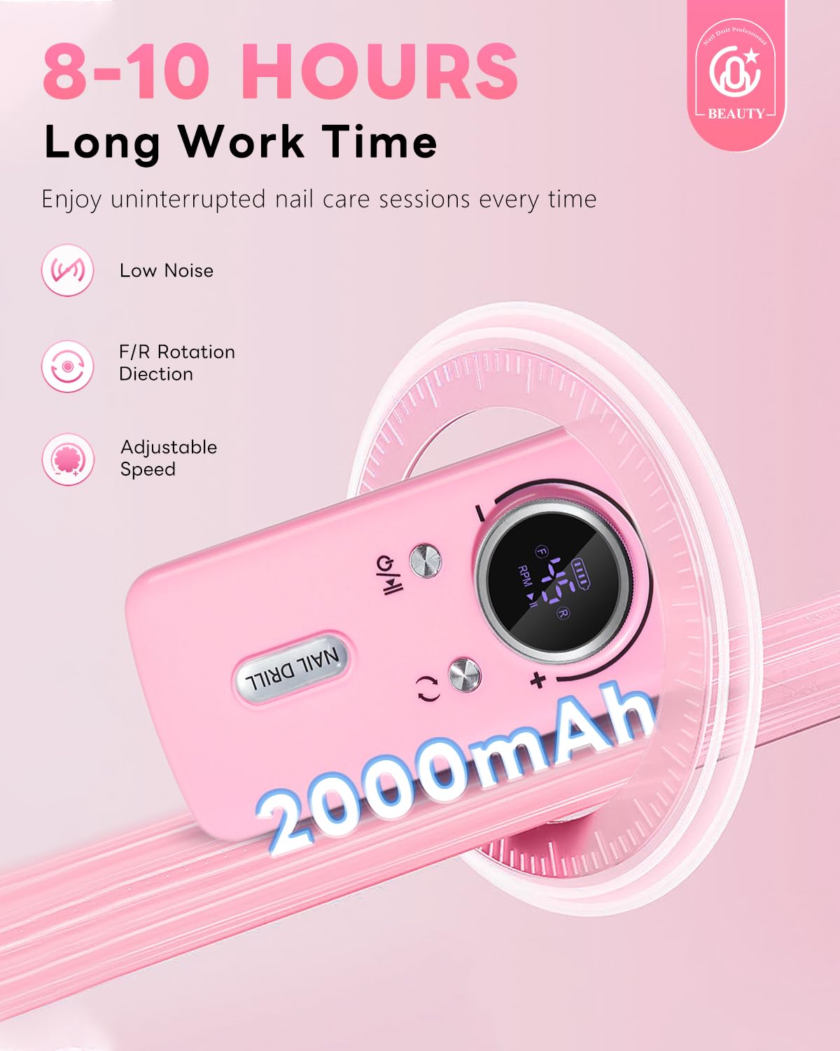 • 【8-10 Hours Long Work Time】Enjoy uninterrupted nail care sessions with our rechargeable nail drill, offering an impressive 8-10 hours of continuous operation on a single charge. Ideal for busy salon environments or long at-home nail treatments, ensuring consistent, reliable performance every time.