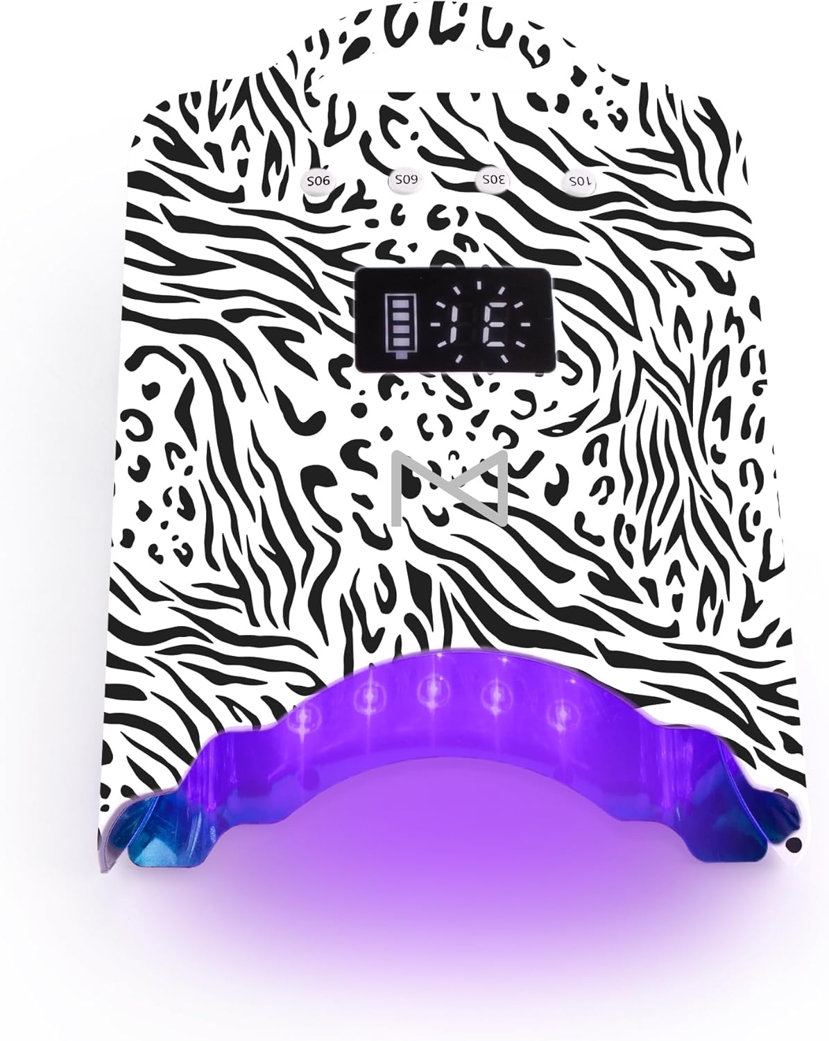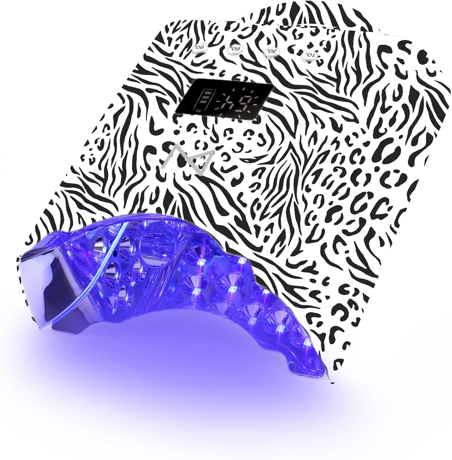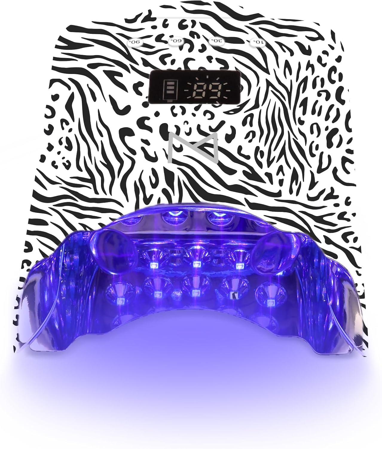 M - NEO Cordless & Rechargeable Nail Curing Lamp 78W with 4 LCD Time Display Timer, Auto Sensor, and Spacious Interior for All Hand Sizes and Nail Lengths (Zebra)