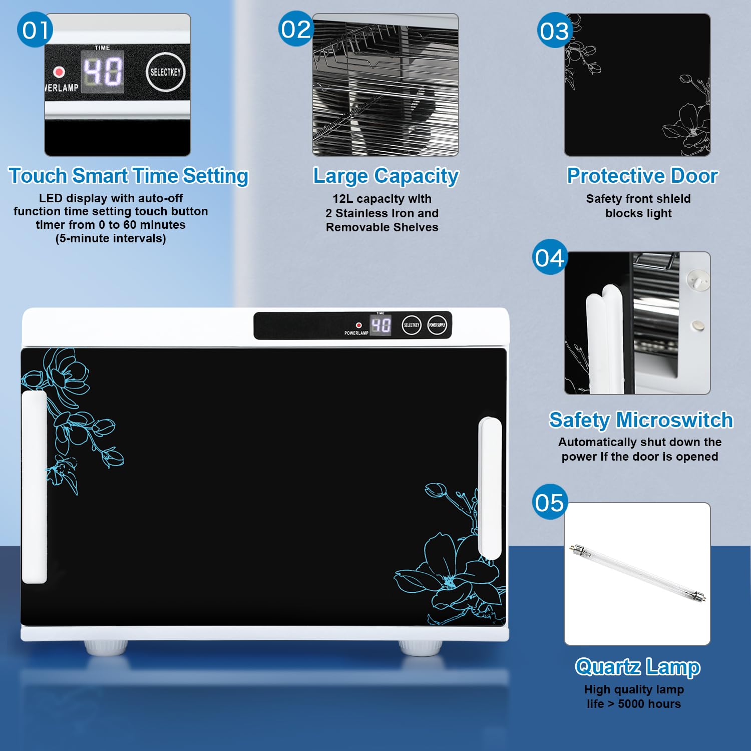 - β Convenient & Easy To Use: Simple to operate, the manicure cleaning box is ready to use by simply plugging and playing. The cabinet with a two-touch screen button setting, you can set the cleaning time from 5-60 minutes (5-minute intervals) according to your requirements to meet different needs. The suspended racks and highly reflective interior surface mean all sides get cleaned at once, no having to flip them over. It also operates with low noise and quiet experience.
