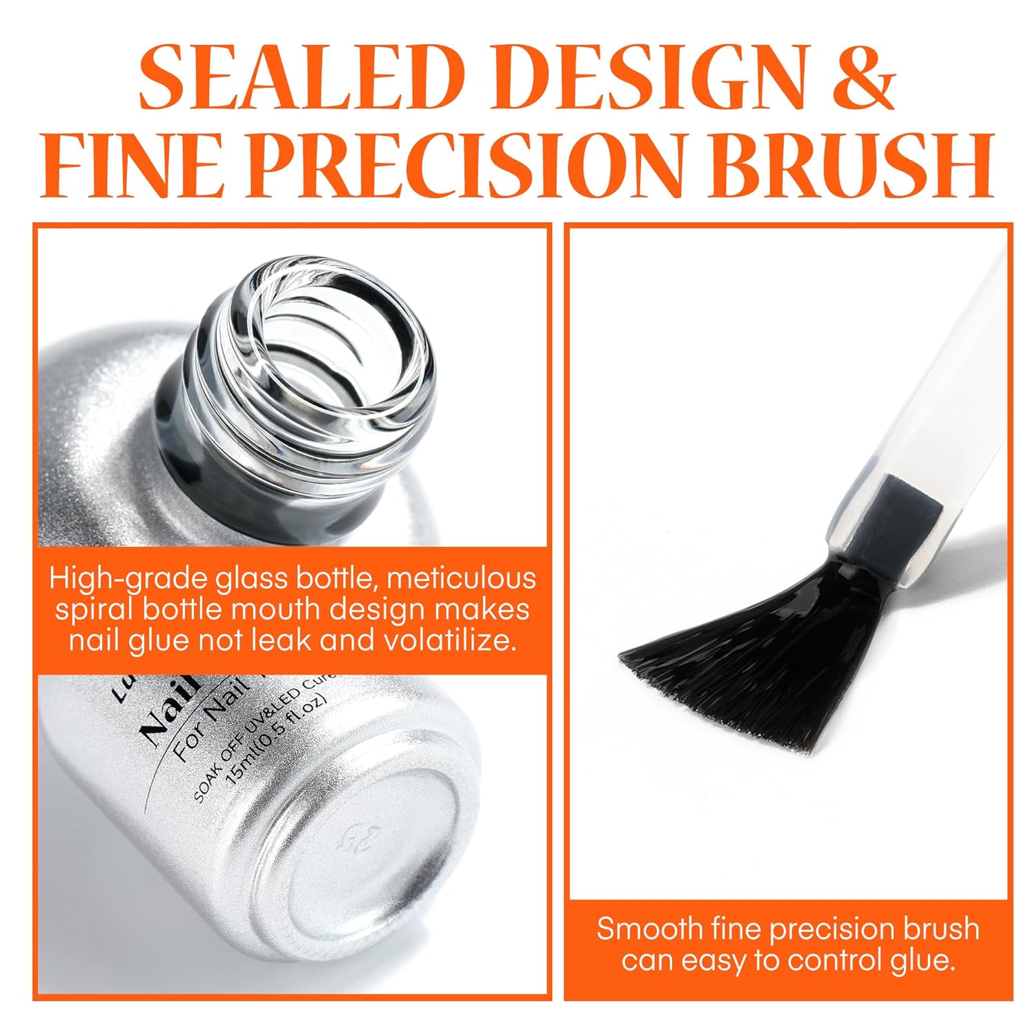 - LONG-LASTING: This nail tip adhesive with fine precision brush applicator, is easy to use and bonds nails quickly & stay long-lasting for 28days+. Warm Tips: Lightly buff your nail bed before apply nail glue gel, for long lasting nail extension.