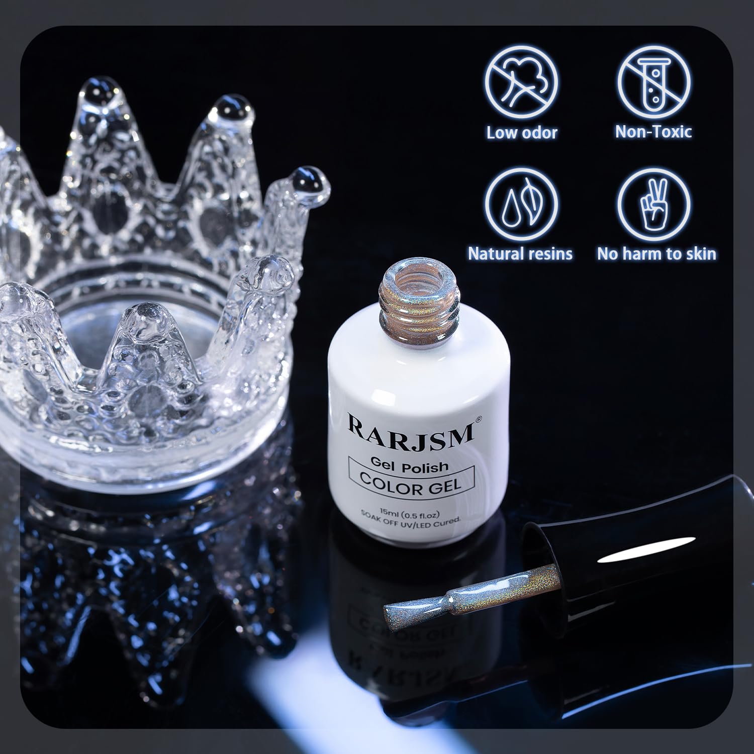 - HOLOGRAPHIC RAINBOW CAT EYE:This cat eye gel polish is a stunning 3D cat-eye effect with a holographic rainbow twist,adding a captivating and multi-dimensional shine to your nails.Made with magnetic shimmers and holographic cateye glitter pigments,create an optical nail lesions that move with every angle