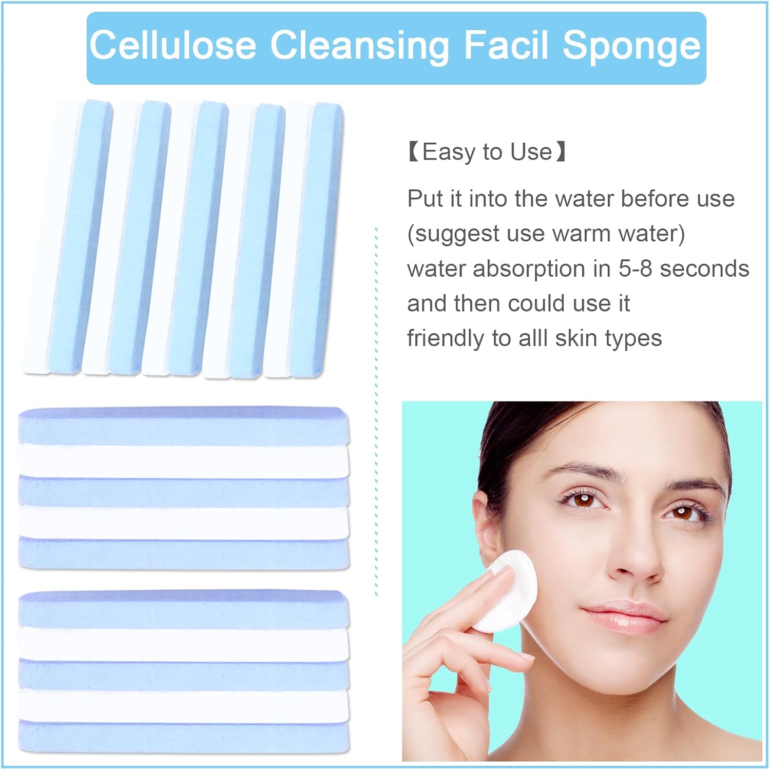 - Portable and Useful Size: The size of face cleansing sponge compressed is 3.1 x 0.31 x 0.31in, when water absorption after the size is 3.1 x 3.1 x 0.31in, small size suitable for all people.