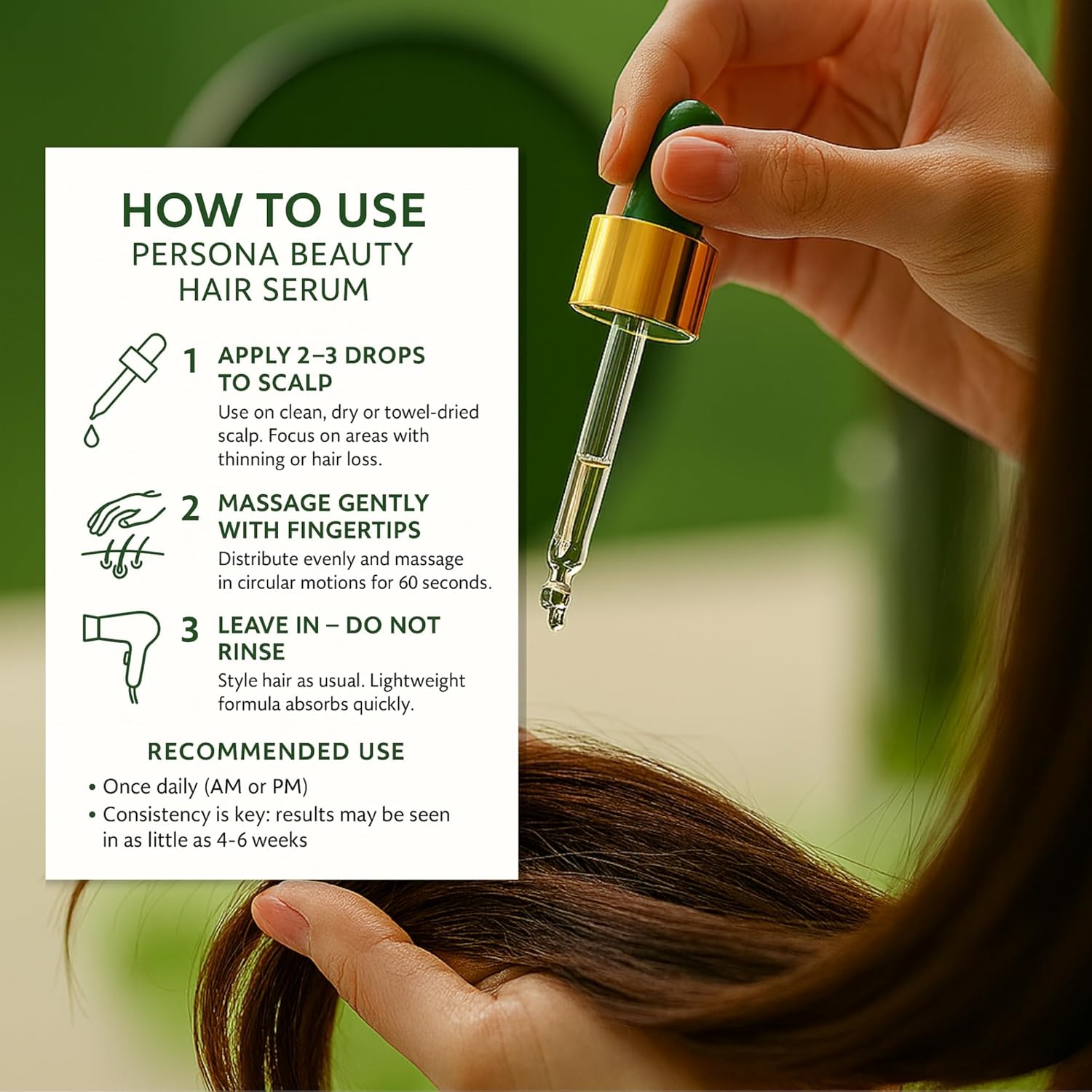 - ✨ Non-Greasy, Lightweight, Fast-Absorbing Serum That Feels Clean and Refreshing on the Scalp Unlike heavy oils or greasy treatments, Persona Beauty’s serum features a water-light, quick-absorbing consistency that delivers maximum nourishment with zero buildup. It won’t weigh hair down or interfere with your styling routine, making it perfect for daily application. Suitable for oily, dry, or sensitive scalps seeking clean beauty solutions that don’t compromise performance or comfort.