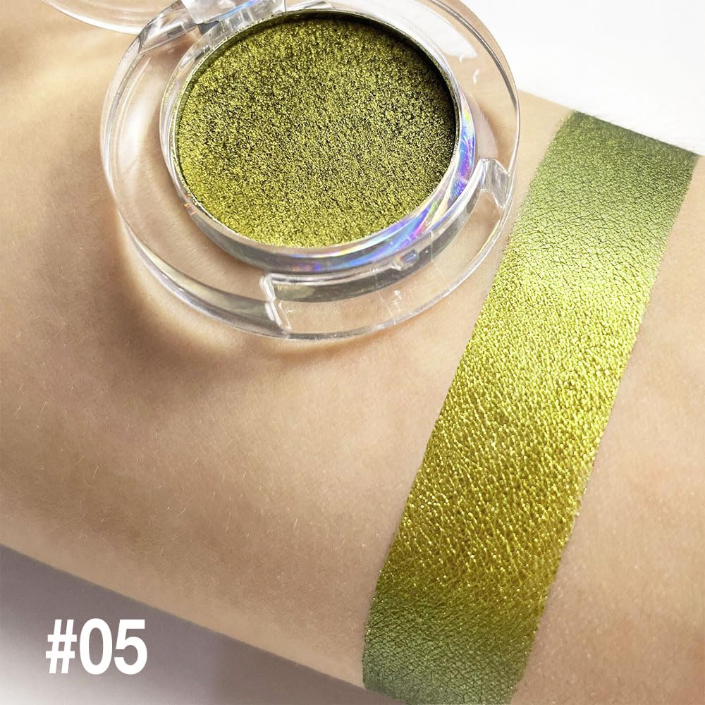 evpct Gold Green Shimmer Chameleon Single Eye Shadow Palette Makeup for Older Women, Glitter Metallic Duochrome Duo Chrome Multichrome Gothic festival Eyeshadow Palette, Face Loose Glitter Eyeshadow