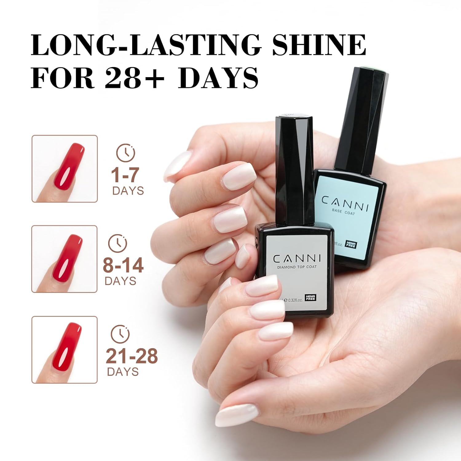 CANNI 2 Pcs No Wipe Gel Top Coat and Base Coat Set- High Gloss Shiny Long Lasting Base Top Coat Gel Nail Polish, Soak Off Nail Art Home and Professional Manicure