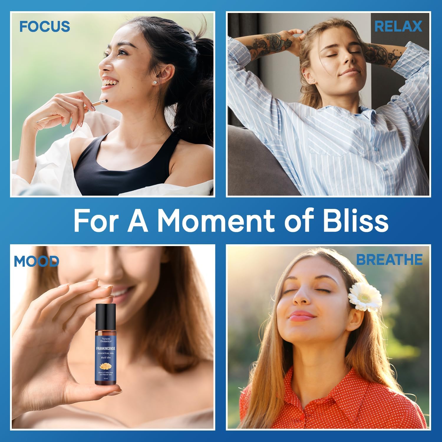 Frankincense Essential Oil Roll-On 10 ml - Pure, Natural Oil with Grapeseed for Aromatherapy & Skin Care - Nexon Botanics