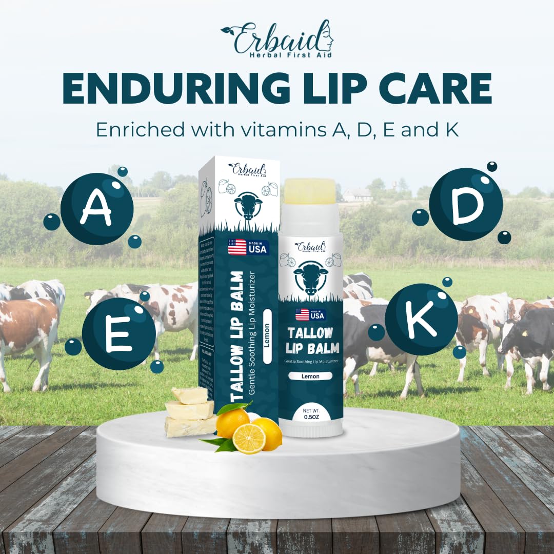 - INTENSELY HYDRATING FORMULA: Immerse your lips in moisture with our grass-fed organic beef tallow lip balm with lemon flavor. Crafted with natural fats, akin to those in human skin, it maintains your lips' moisture barrier for enduring hydration and velvety softness.