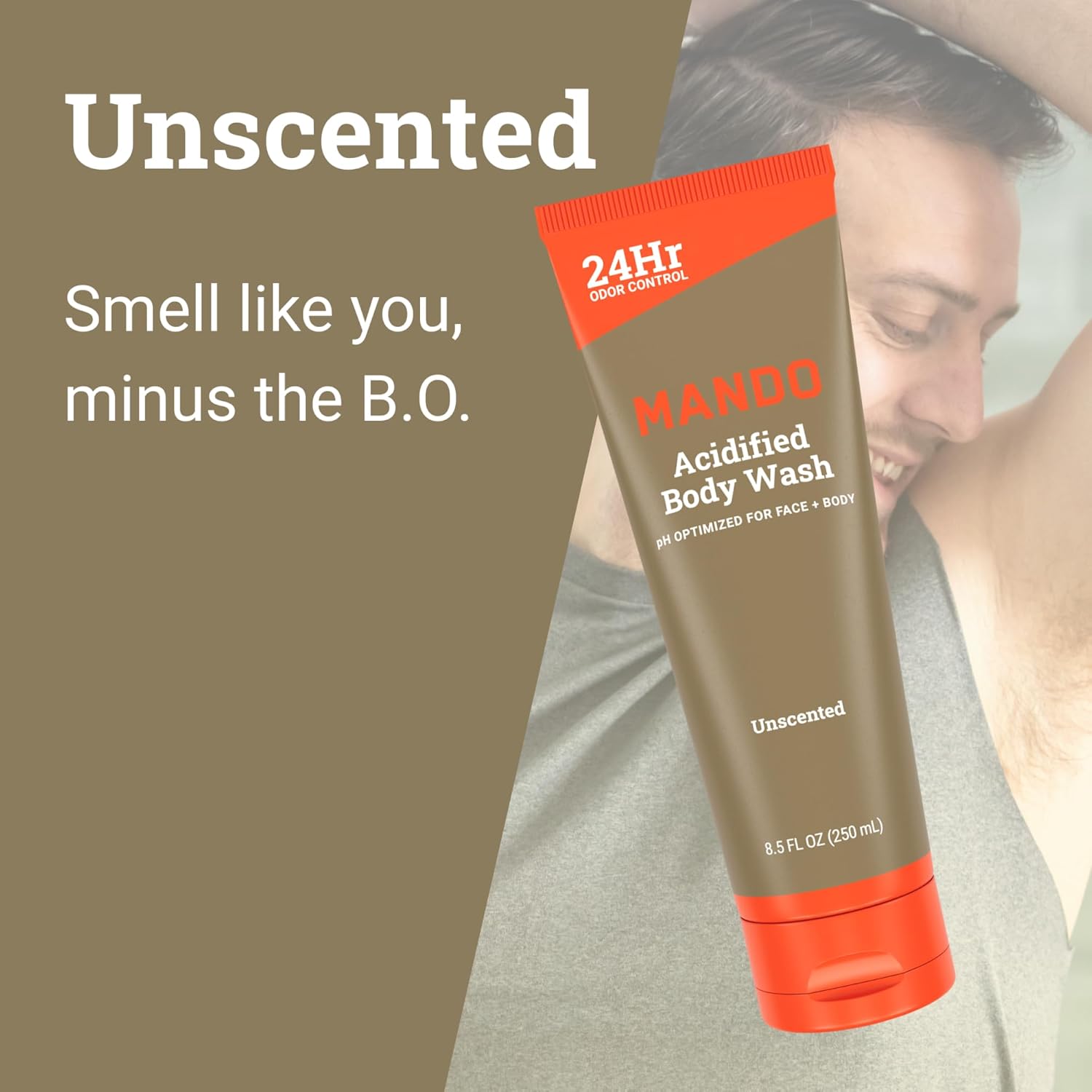 Mando Odor Shield Body Wash - 24 Hour Control - Removes Odor Better than Soap - SLS Free, Paraben Free, Skin Safe - 8.5 Ounce (Pack of 2) (Unscented)