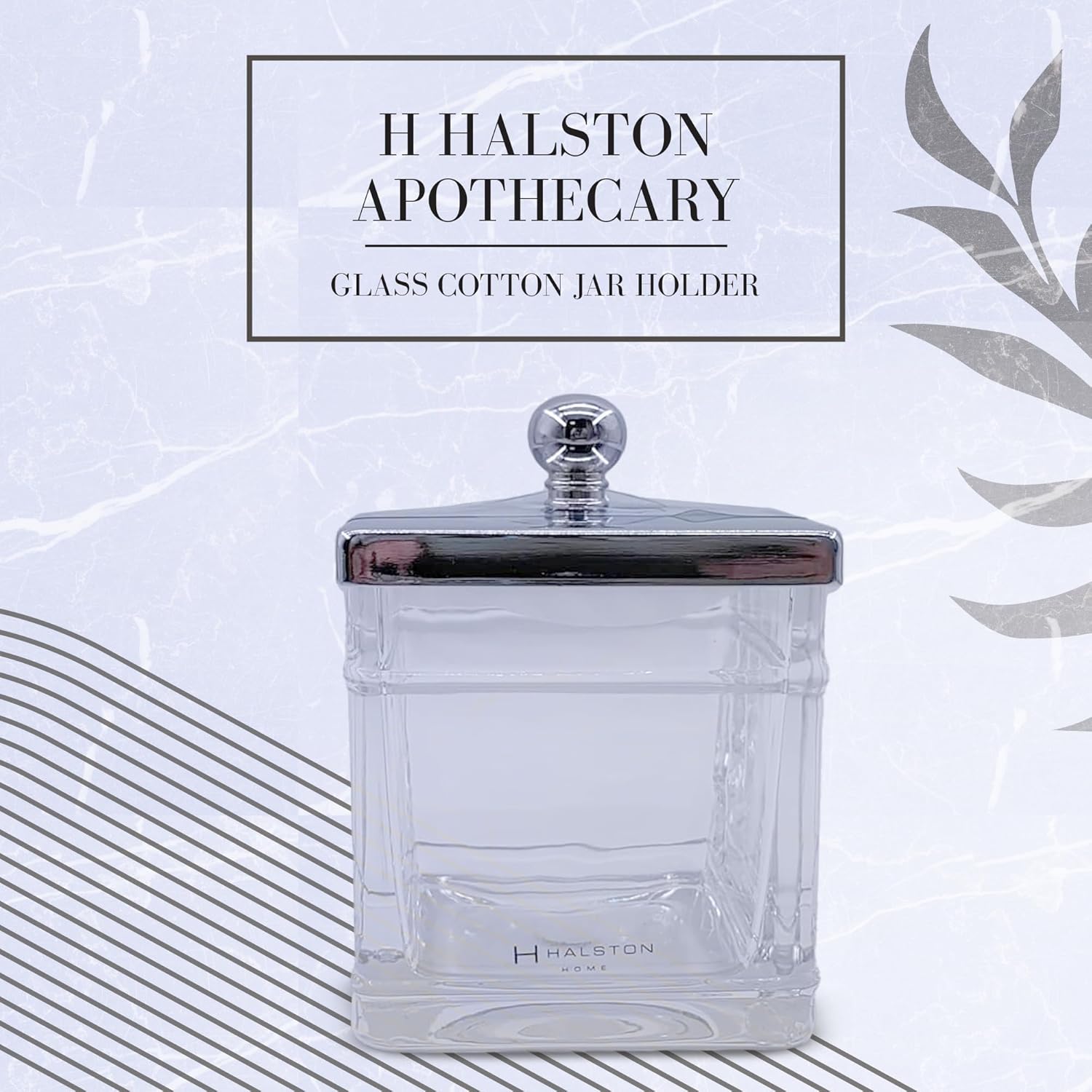 Apothecary Glass Cotton Jar Holder Silver Stainless Steel Lid, Elegant Bathroom Storage Canister for Qtips, Cotton Balls, Floss, Makeup Organizer, Vanity Bathroom Organization
