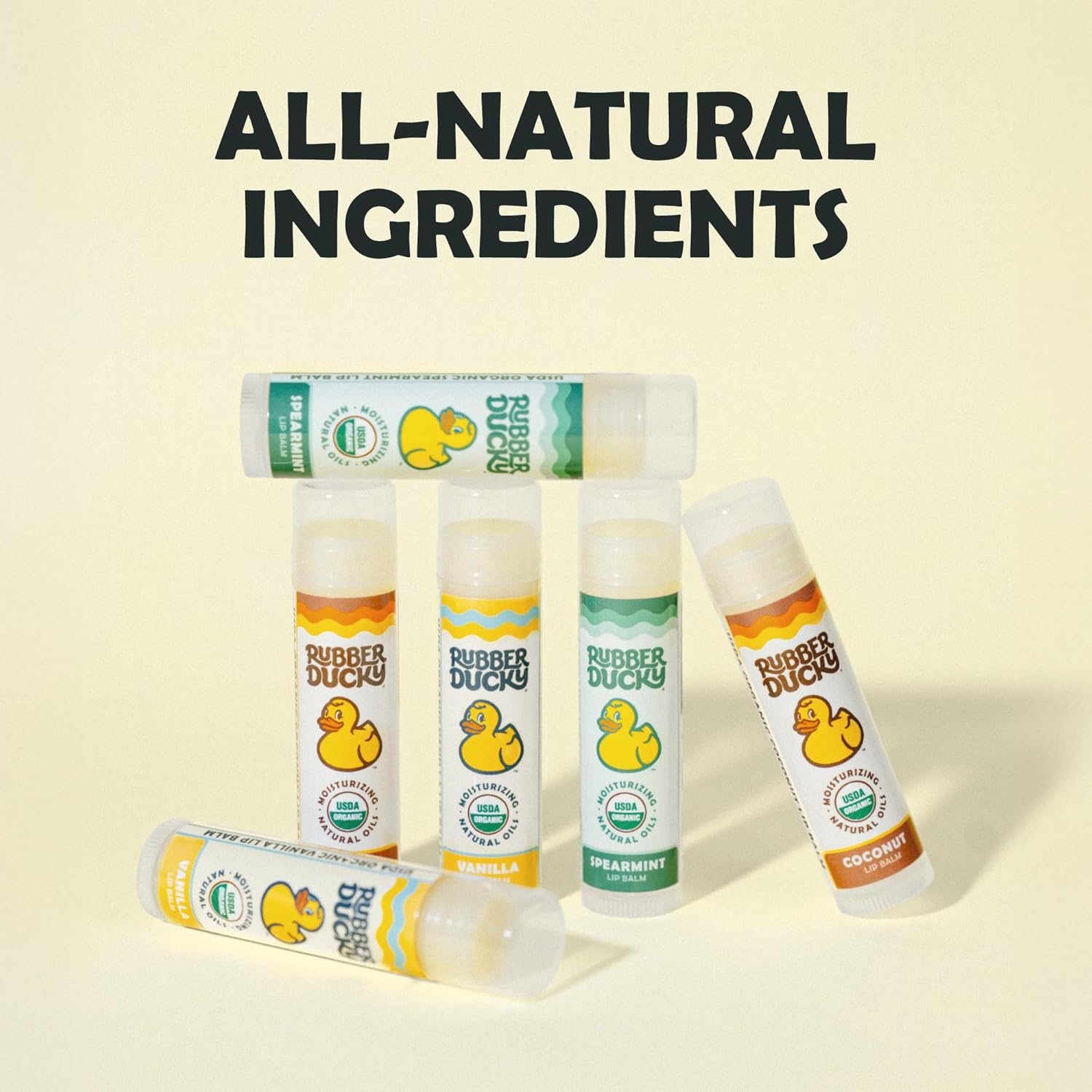 Rubber Ducky Sunscreen - Organic Lip Balm for Women, All Natural Stick with Vitamin E - Moisturizing & Hydrating Lip Balm for Dry Lips - Untinted and Non-Toxic Lip Care - Spearmint, 3 Pack