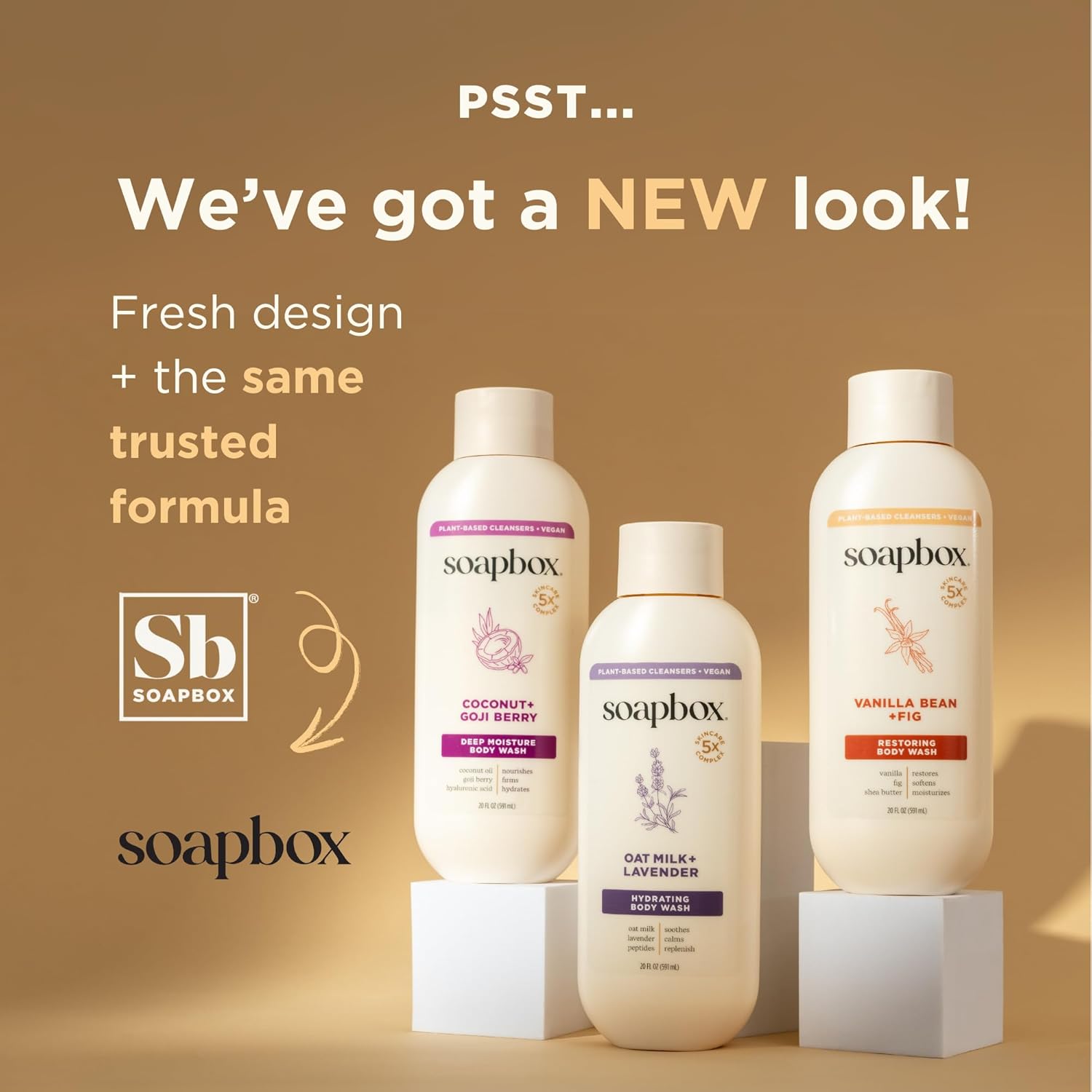 Soapbox Body Wash, Vanilla Bean & Fig Liquid Body Wash, Moisturizing Soap with Shea Butter, Vegan Duo Pack of 2 Soap Bottles, 20oz Each