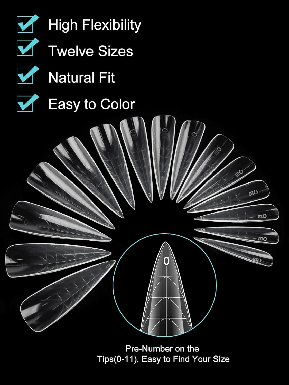 - 【Nail Form Mold with 15 Sizes】450pcs stiletto clear dual forms for poly nail gel offers 15 different nail sizes , and each size of long nail tips is separated by a small grid, a total of 15 grids, so they're easy and convenient to choose the suitable size to meet your nail's need.