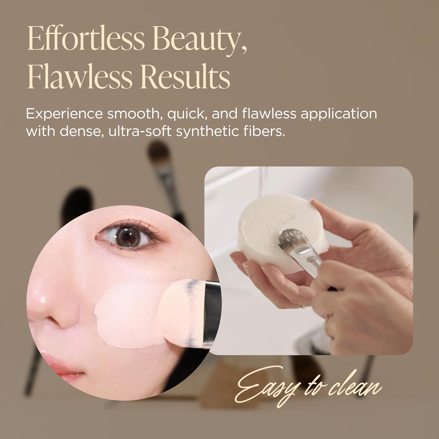 - Soft Synthetic Bristles for Flawless Application Crafted with soft and resilient synthetic fibers, this professional makeup brush delivers a streak-free finish while enhancing skin texture. Ideal for sensitive skin, it applies liquid foundation gently without irritation or clumping