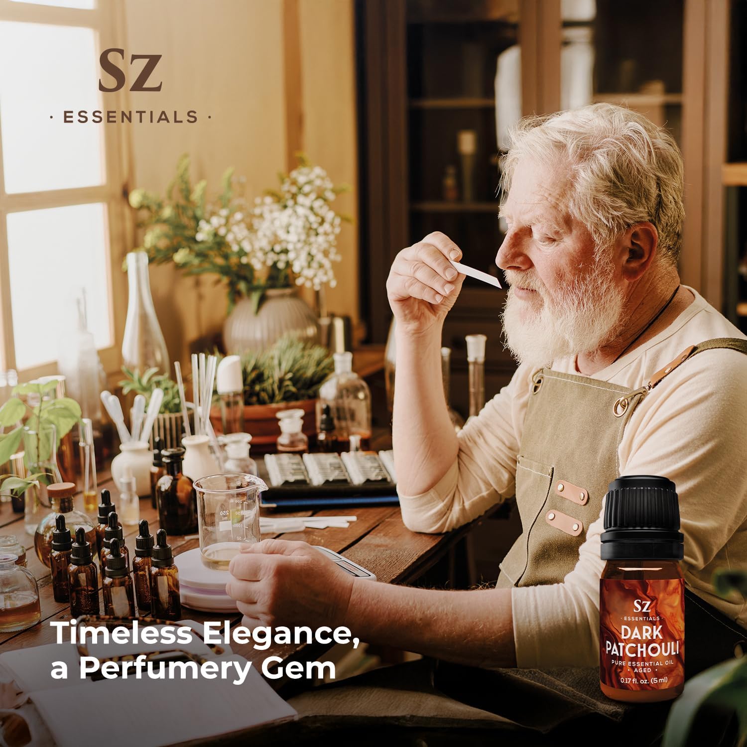 – 5-Year Aged Dark-Patchouli – Premium Essential Oil – Deep, Earthy Aroma | 100% Pure for Aromatherapy, Wellness & Natural Perfumery – DIY | Therapeutic Grade & Vegan – 0.17 fl oz.