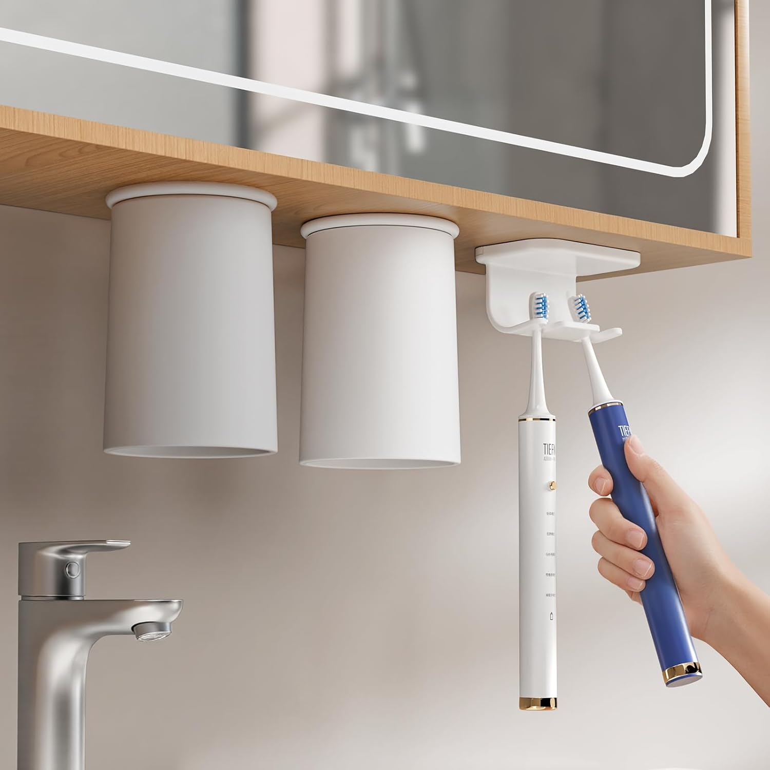 Toothbrush Holders for Bathroom【Innovation Magnetic Inverted Design】 Toothbrush Holders Wall Mounted with Bathroom Tumbler Toothbrush Cup for Bathroom Cabinet Storage