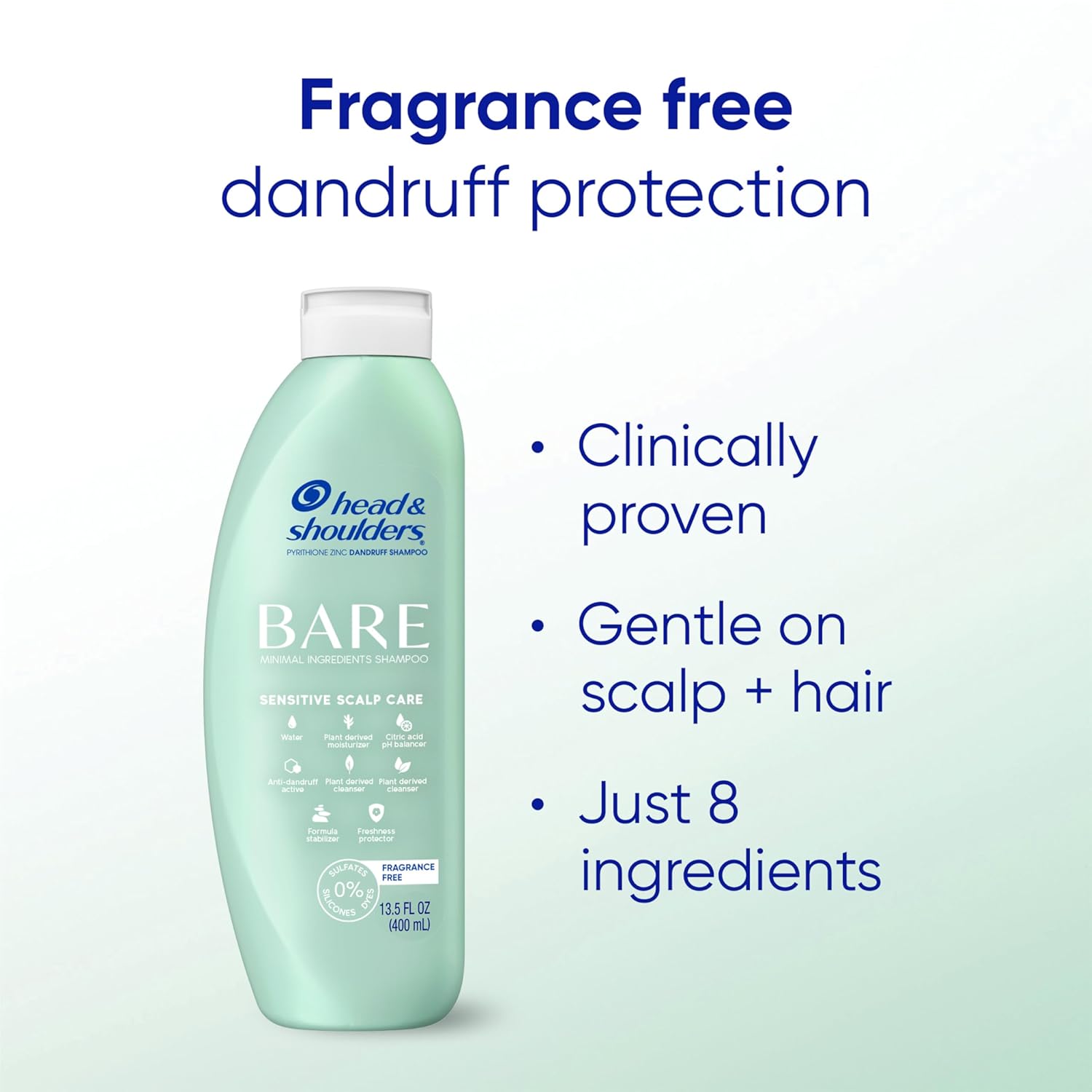 Head & Shoulders BARE Dandruff Shampoo Twin Pack, Fragrance-Free, Sensitive Scalp Care, Sulfate-Free, Silicone-Free, Dye-Free, Eco-Friendly Bottles, Safe for All Hair Types, 13.5 Fl Oz Each (Set of 2)