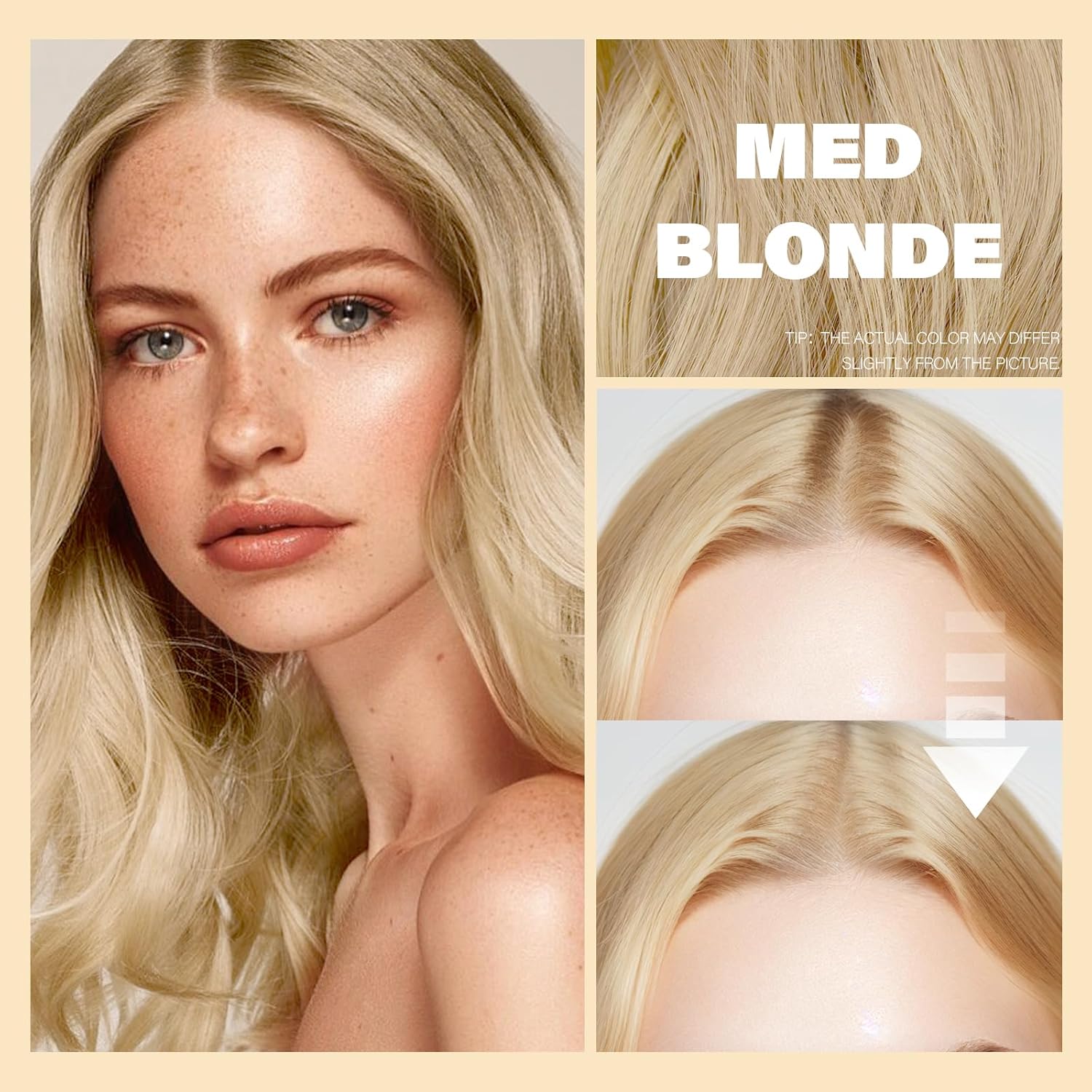 Root Touch Up Sets,Hairline Powder for Women Cover Up- Hairline Concealer for Thin and Thinning Hair, Water & Sweat Resistant,Contain Azonbey Makeup Brush (Med Blonde, Med-Makeup Brush)