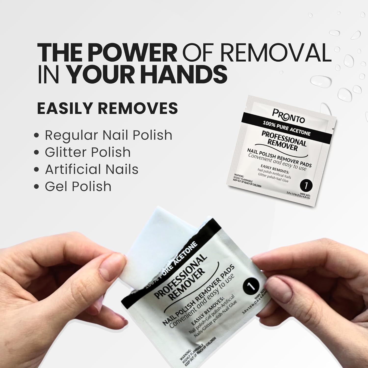 - 100 PCS OF ACETONE NAIL POLISH REMOVER PADS: Made with pure acetone, our Nail Polish Remover Pads help break down nail polish and more. While nail polish may need extra soaking and scraping, these pads soften layers for easier removal.