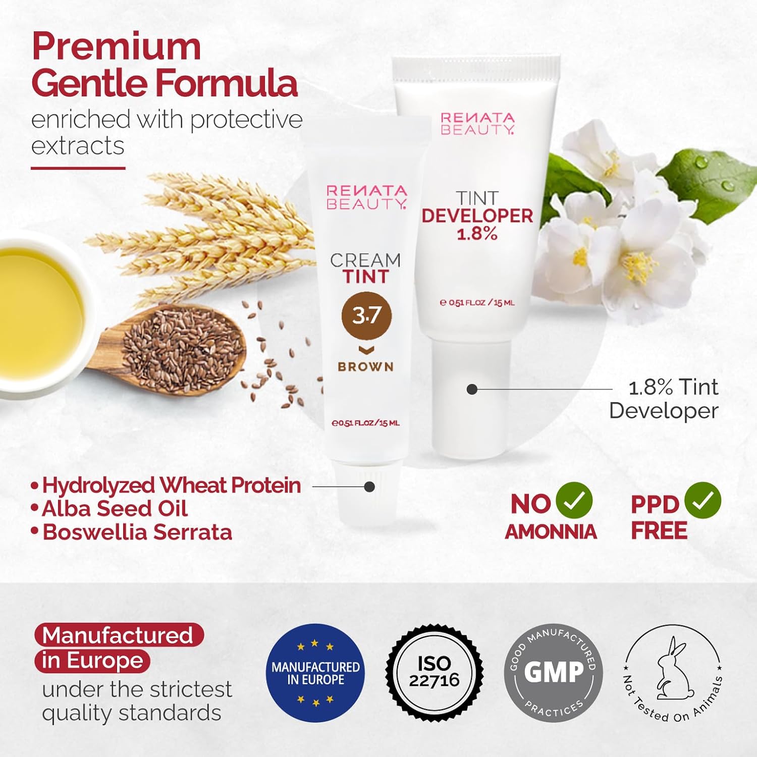 RB RENATA BEAUTY Tint Kit โ Cream Hair Dye Kit with Developer and Application Brush for Spot Coloring - Covers Gray Hairs, Smudge-Proof, Long-Lasting Up to 4 Weeks, 20 Applications [Brown]