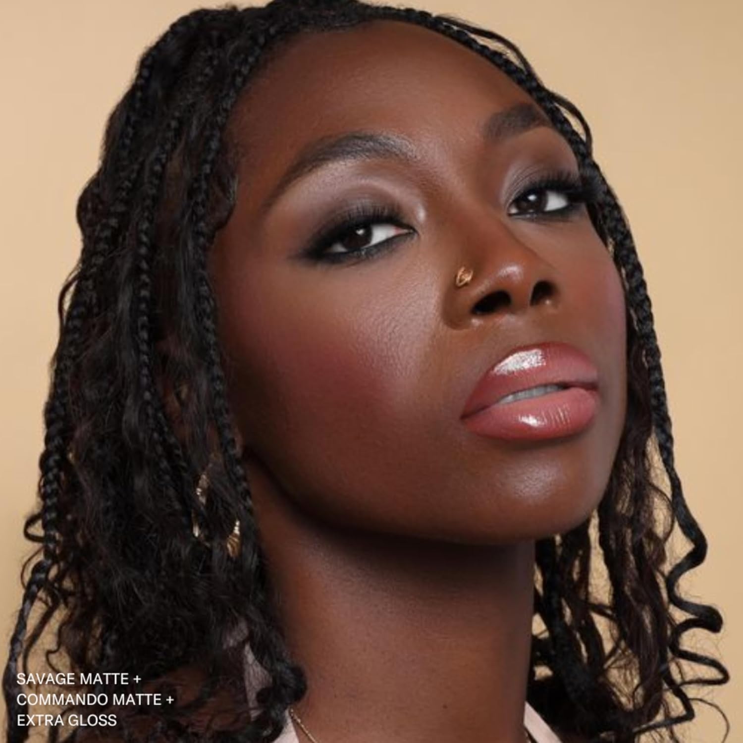 - Commando - We have a matte to match all your moods. This Peachy Nude non-stop liquid matte goes on like a gloss, dries down matte, and lasts all day with an 8-12 hour wear. Infused with Jojoba oil and Vitamin E.