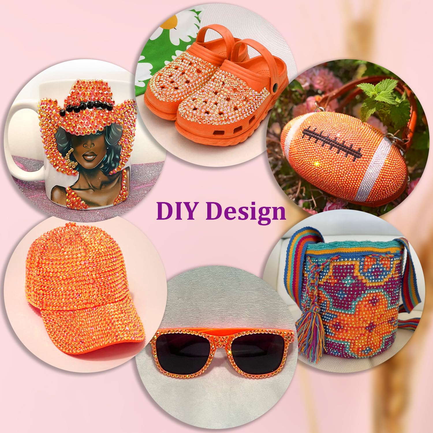 - PACKAGE CONTENT -- Include 1 box with 24 grids, featuring a variety of sizes, approx. 25000 pcs bling-out resin rhinestones (Orange AB). 1 tweezers and 1 pickup pen are included for easily picking up of rhinestones