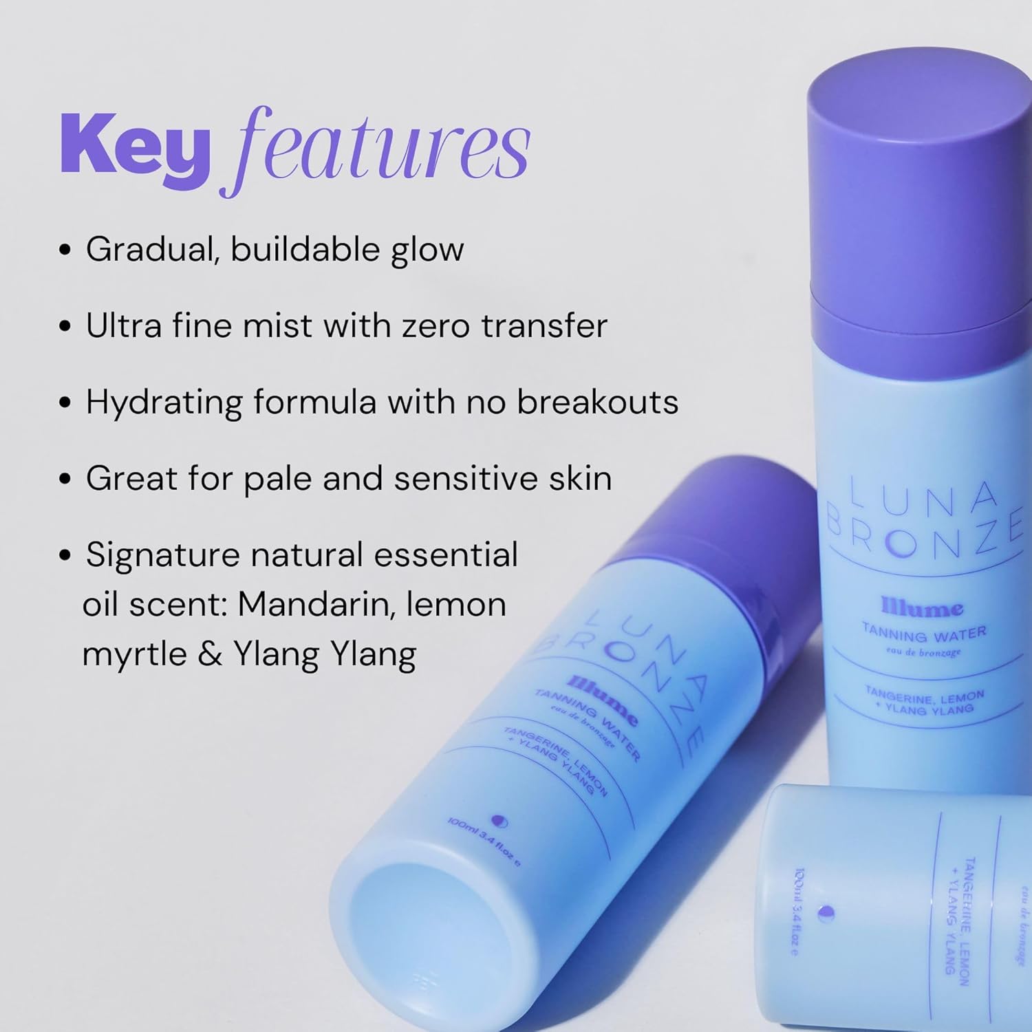 Illume Tanning Water - Liquid, Natural & Organic, Vegan Friendly, Cruelty Free, For All Skin Tones, Light-Medium Glow, Hydrating & Nourishing