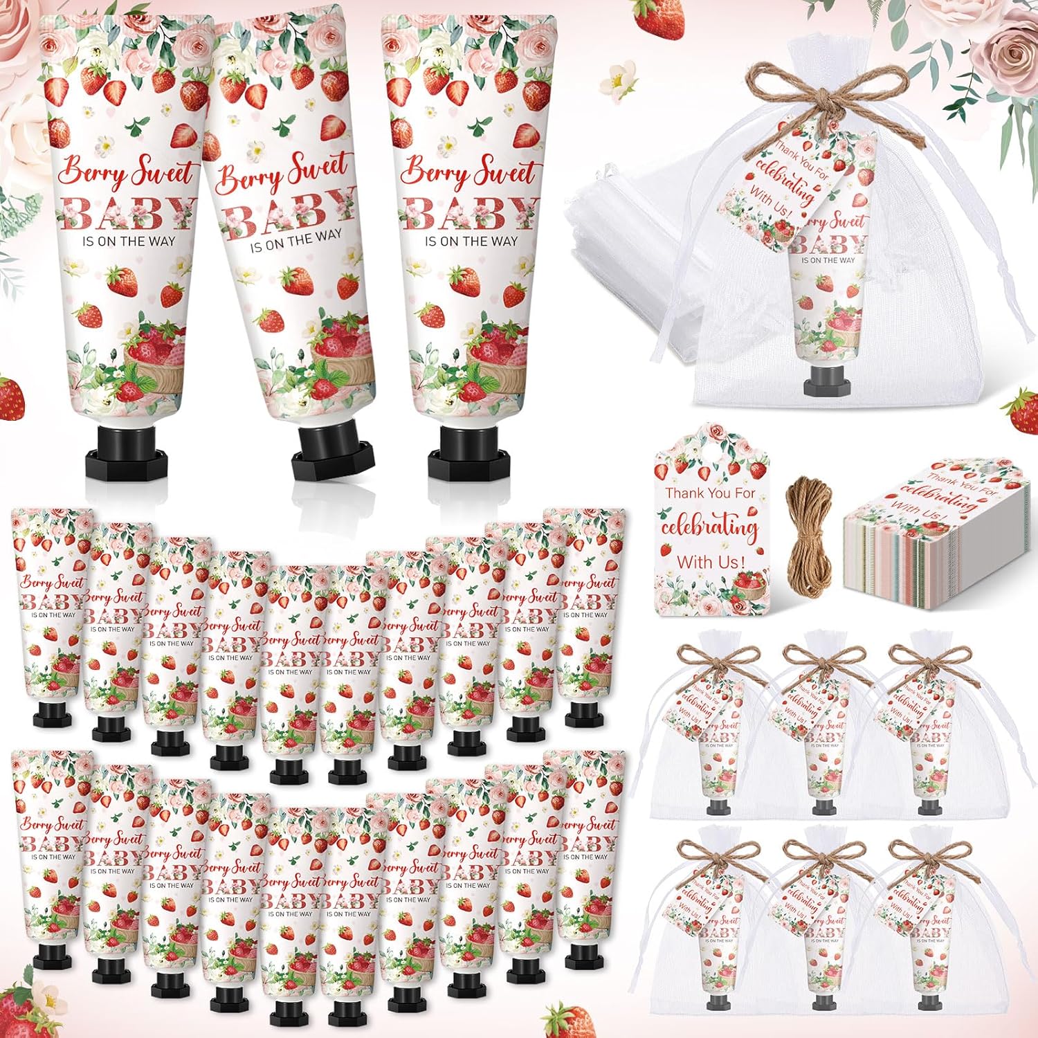 48 Sets Strawberry Hand Cream Gifts Baby Shower Party Hand Cream Favors for Guests Berry Sweet Baby Is on the Way Gift Bulk Travel Size Hand Lotion Set for Guest