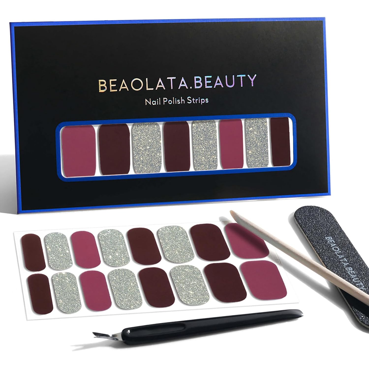 Nail Polish Strips, 32PCS Salon Quality Wraps, Long Lasting Gel Nail Stickers for Women Easy Apply& Remove (Berry Preserved)