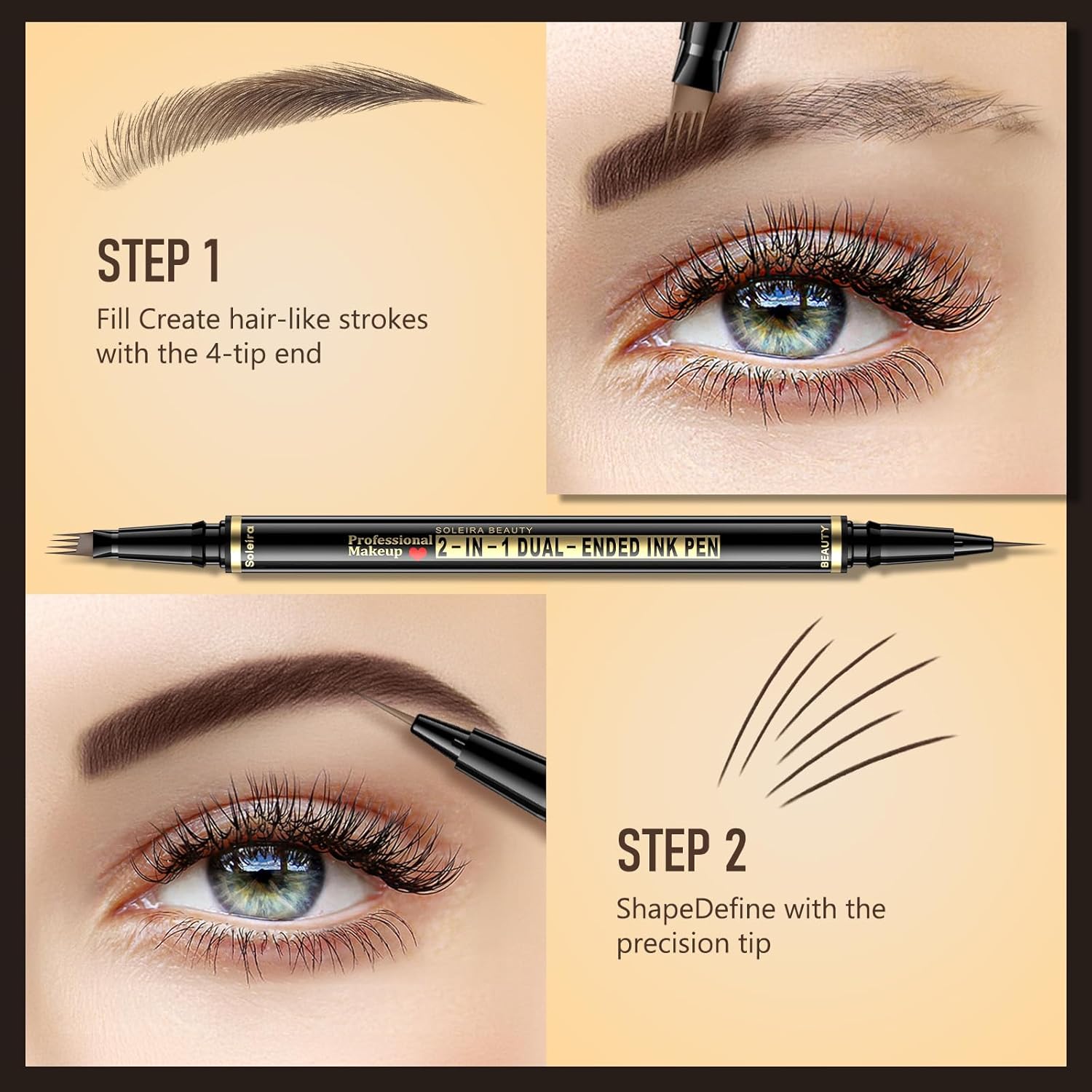 - Dual-Ended Design: This eyebrow kit includes a 4-tip microblading eyebrow pen for natural, hair-like strokes and a single precision tip for shaping. It also comes with a dual-ended brow brush—one end for blending, the other for perfecting finer details. Achieve flawless brows effortlessly