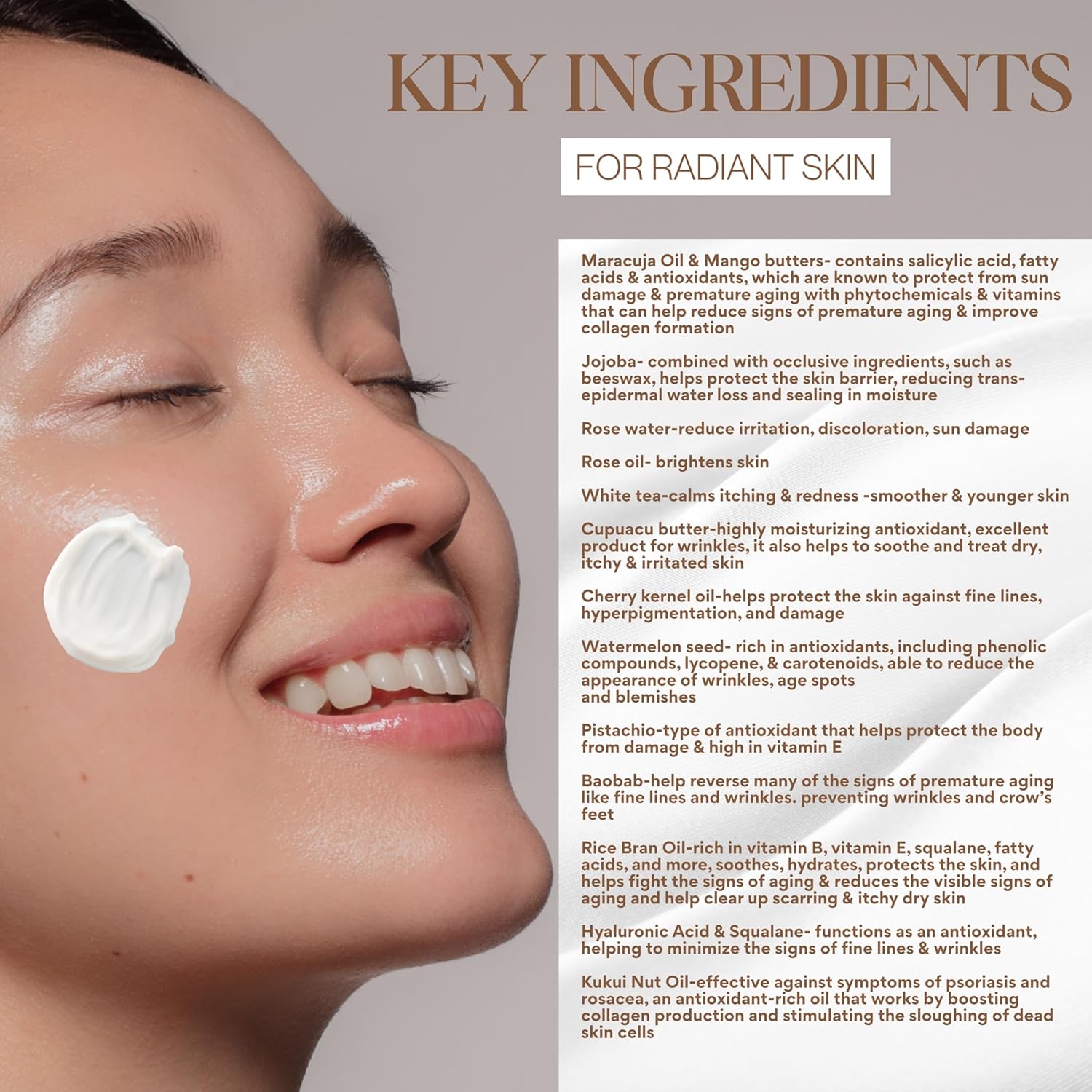 - Luxurious Hydration with Mango & Cupuaçu Butters- Rich in phytosterols and essential fatty acids, our body butter deeply moisturizes while restoring skin’s elasticity and suppleness. Cupuaçu holds 4x more moisture than shea!