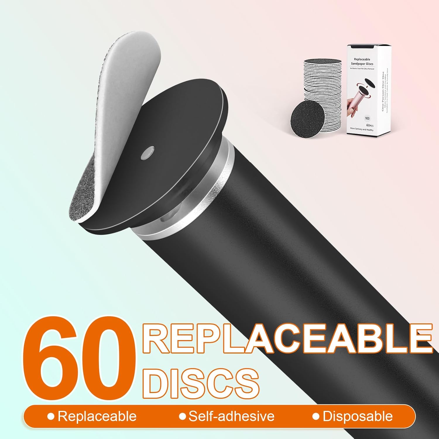 - SPONGE BACKED ADHESIVE SANDPAPER: 60 Replaceable sponge backed adhesive sandpaper discs, easy to stick, firm and stable, will not fall off when using the electric foot callus remover.