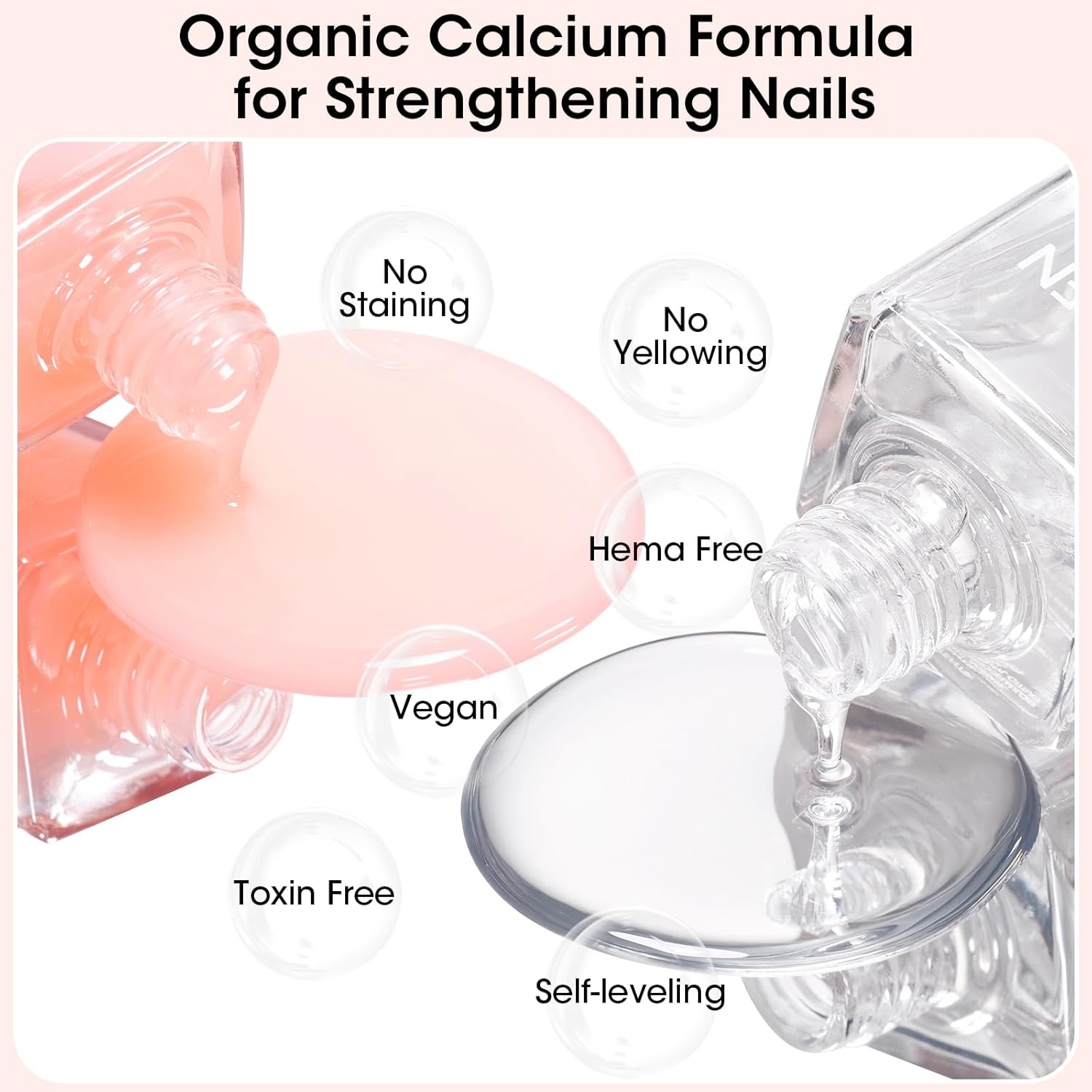 Gellen Clear Nail Polish Base Top Coat, No Wipe Shine Top Coat & 4-In-1 Tinted Nude Base Coat Strengthens Nails - Calcium, Quick Dry Natural Color Regular Nail Polish, Not UV Gel, Hema Free, Non-toxic