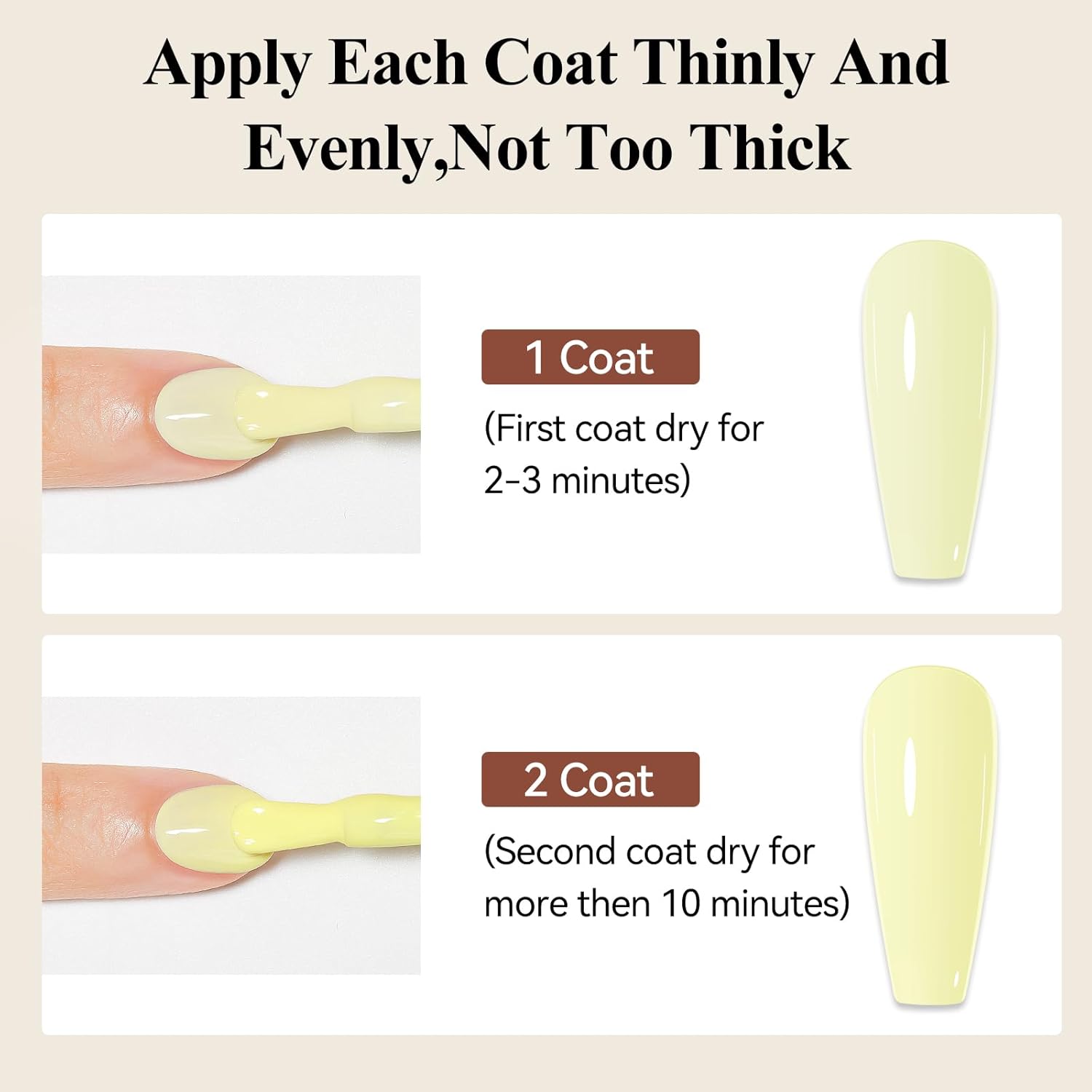 - Air Dry Fast: Get stunning nails in a snap with Bevimee yellow nail polish! Bevimee nail polish non gel, goes on smoothly, Say hello to fast drying, no UV naill lamp needed, no more waiting around for hours, really get out the door quickly